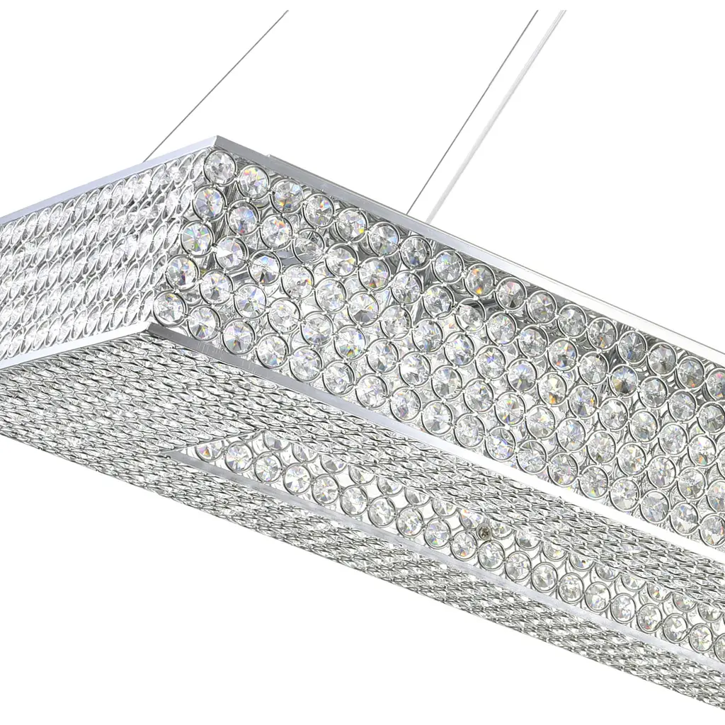 Get mesmerized by the sparkling beauty of Dannie 16 Light Chandelier. This striking light fixture is bound to bring a feminine touch and a dose of luxury to your space. it features a rectangular frame with chrome rims and lattice pattern completely covered in clear crystals. Sitting inside are bulbs that provide light radiated elegantly by the crystal beads.