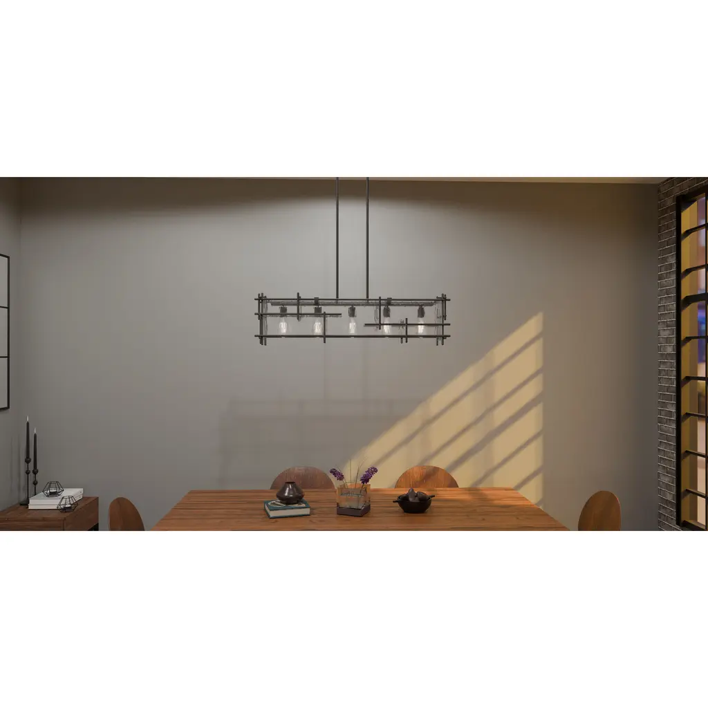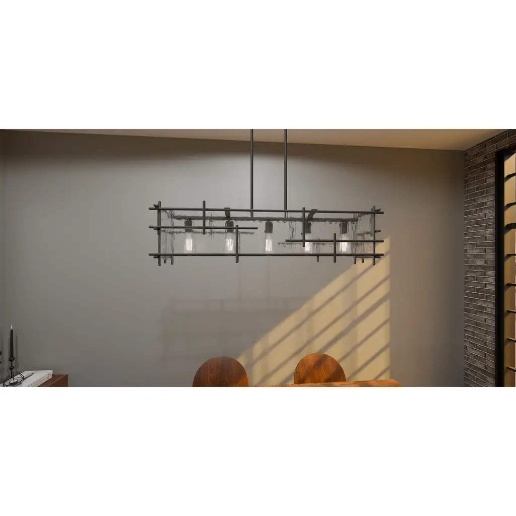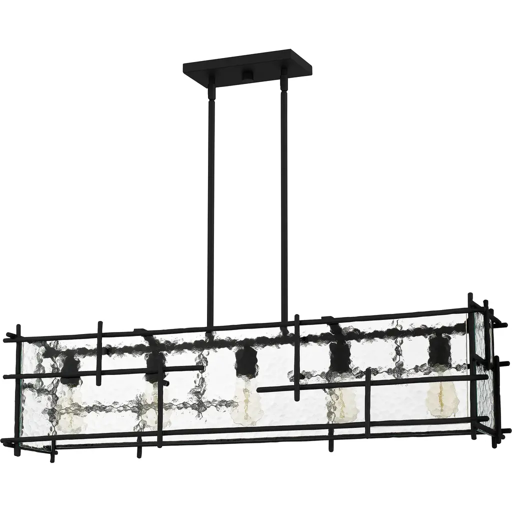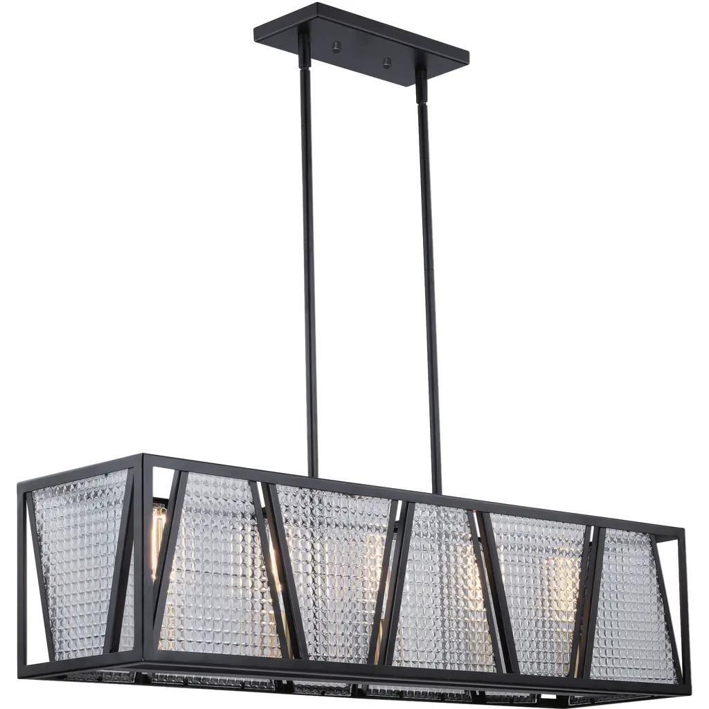 Daphne's transitional design adds subtle style to any space. The open rectangular silhouette features staggering matte black lines and clear ice glass for a beautiful contrast. Available as an island light, pendant, or semi-flush mount, Daphne makes a statement in any kitchen, dining room, or living room.