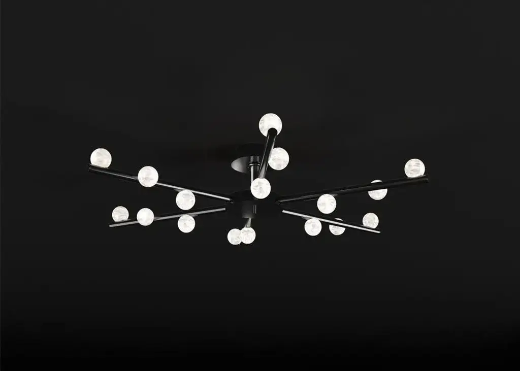 Demetra shiny black metal ceiling lamp by alabastro italiano dimensions: d 85 x w 97 x h 22 cm. Materials: white alabaster and shiny black metal. Available in different finishes: shiny silver, bronze, brushed brass, ruggine of florence, brushed burnished, shiny gold, brushed black, freedom green, shiny black and copper. Please contact us. All our lamps can be wired according to each country. If sold to the usa it will be wired for the usa for instance. The name demetra, goddess of flora, sister of zeus, fully reflects the particular shape of this series by alabastro italiano. The spheres, of pure hand-turned alabaster, look like fruits hanging from the branches of a hypothetical tree of light. These brilliant elements stand out between heaven and earth and symbolize the richness that only mother nature can offer us. After years of experience in the family business, which specializes in design and lighting, riccardo and alberto ongarato found the brand alabastro italiano. Each project is conceived and designed to give a strong sign of recognizability and uniqueness. The use of precious materials such as alabaster, brass, leather and blown glass, worked by the skilful hands of our craftsmen, are combined to create “timeless” objects. From the depths of the earth to the light of the sun. Alabastro italiano care about these extremes and transcends them in a creative dynamic that emphasizes simplicity and clean-cut lines. The company has created an entirely new project made in italy, revolutionizing the previously existing collections into eternal and evergreen lighting elements. By designing clean-cut and original lines, built-in with the latest technology and continuously innovating, alabastro italiano has never lost sight of its goal: perfection. The result of this work is an extraordinary collection of alabaster lightings. Alabaster needs human hands to come to life. The charm of these stone objects comes from their uniqueness, from the fact that they come from the hand of those who has left a mark and a memory with their work, each grain makes each piece unique. Alabaster needs human hands to come to life. The charm of these stone objects comes from their uniqueness, from the fact that they come from the hand of those who has left a mark and a memory with their work, each grain makes each piece unique. Alabaster is a material that leaves little traces of magic all around it. It is difficult to identify the exact point where the material ends and its reflection begins. It is impossible to understand how far the light sinks in its soft transparency. It changes according to the positions in which it is placed, depending on the point of view. Alabaster is a compact and rare stone that lays down very precise laws requires a familiarity that only italian craftsmen possess. Alabastro italiano collaborates with each client to create a unique project. Starting from the advice for better architectural lighting, it brings its know-how, materials, design and creative inspiration to interior architects and interior designers. up to 250v (europe/uk standard).