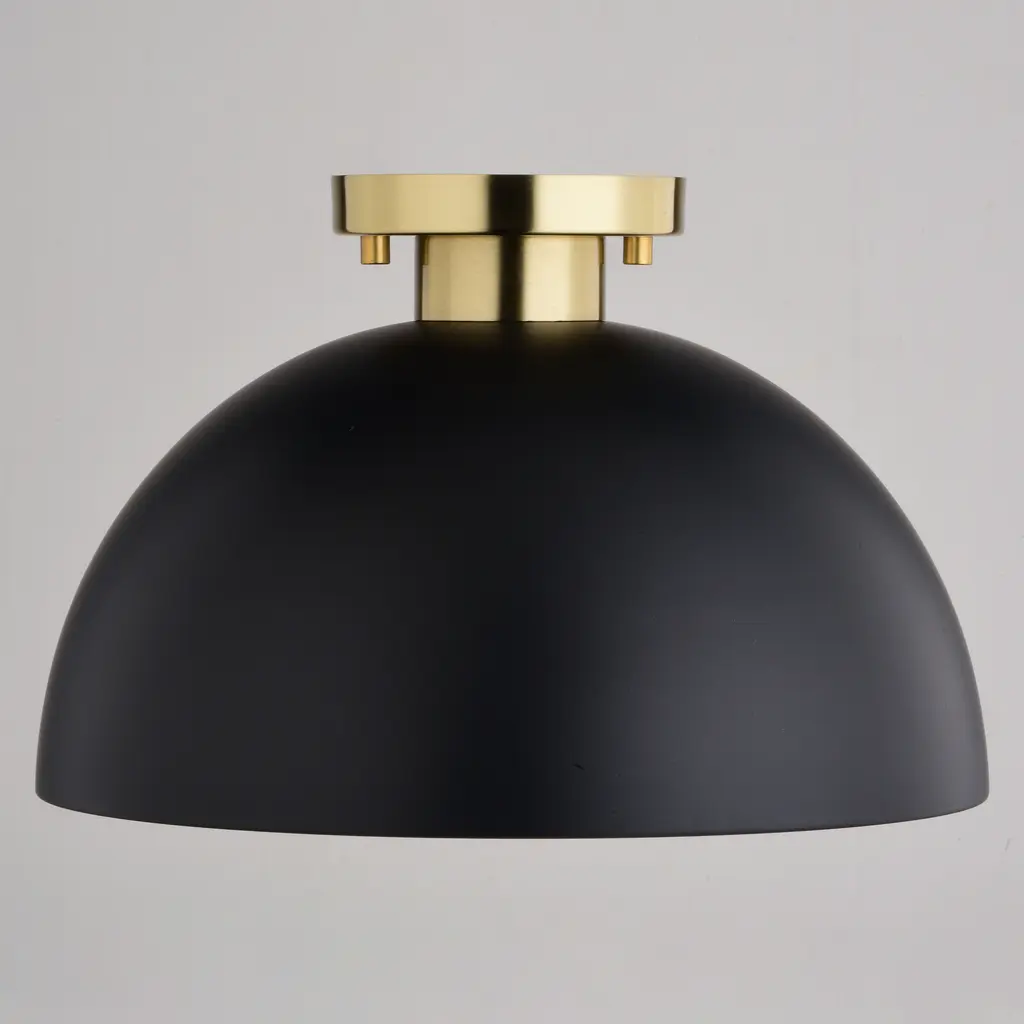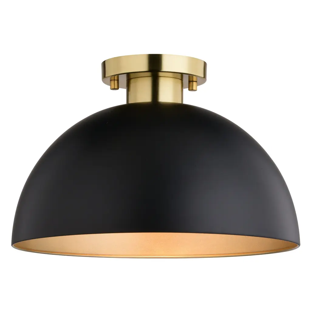 Devon 12.75-In W Led Compatible Mid-Century Modern Semi Flush Mount Ceiling Light - Matte Black And Satin Brass - 12.75-In W X 8.25-In H X 12.75-In D