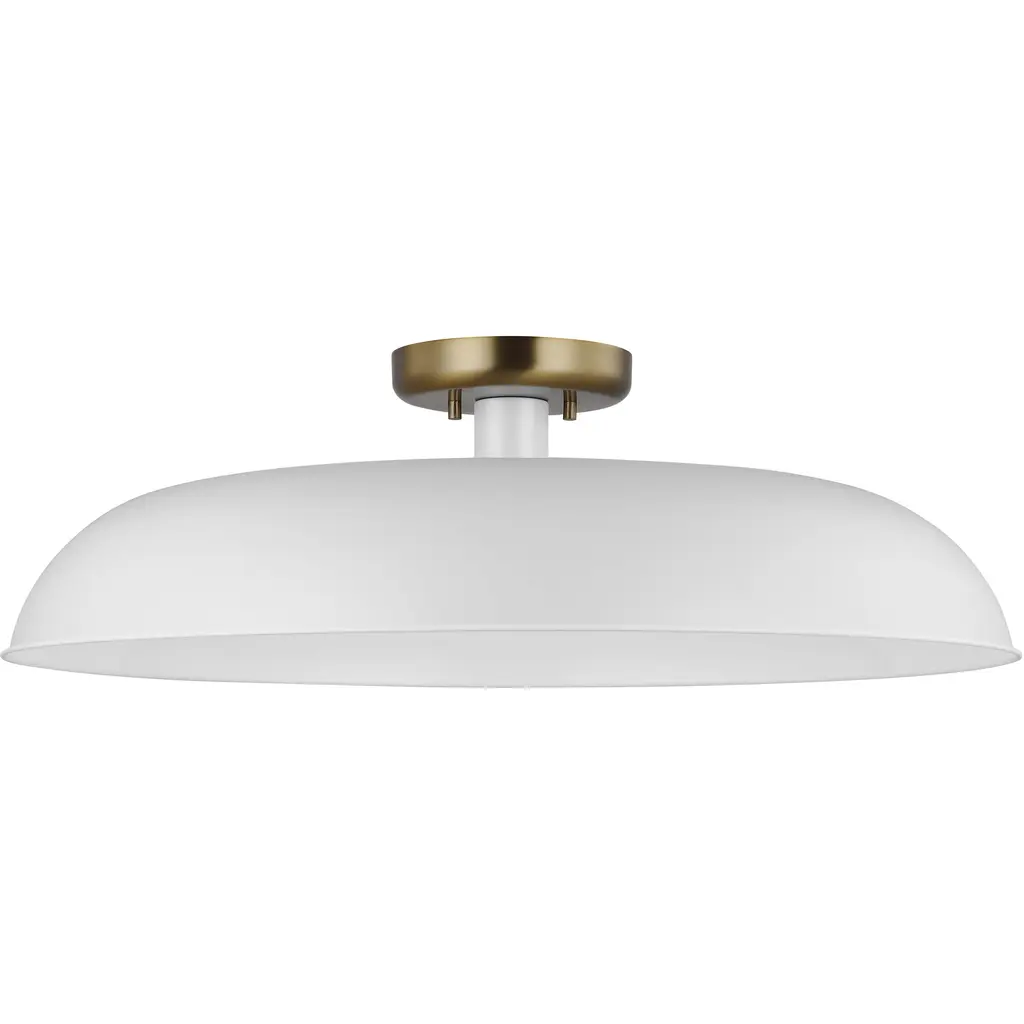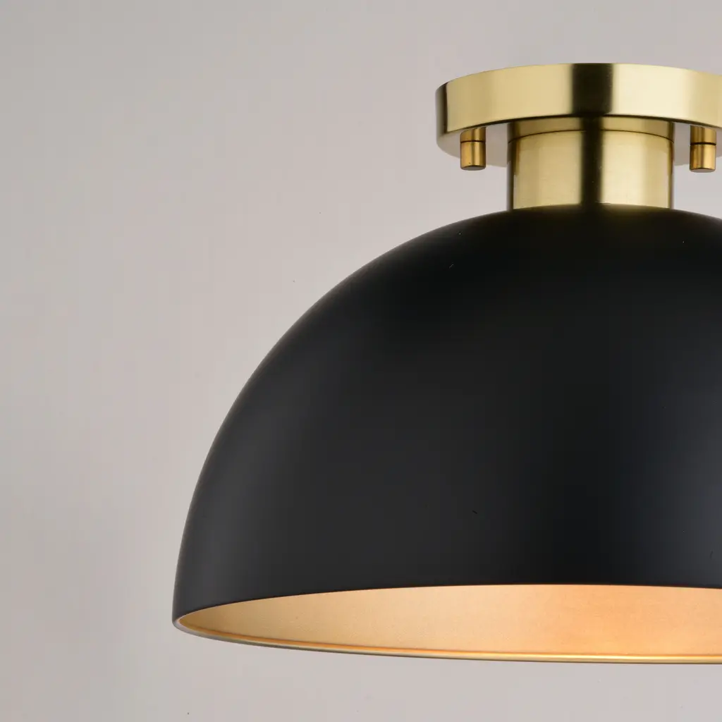 The Devon collection showcases a ceiling light that exudes elegance and simplicity at a great price point. The classic dome shape is complemented beautifully by two-tone accents which add a luxe touch to the overall design. The golden interior casts a soft glow of focused light and shows off the light's blend of modern minimalism and classic elegance. This ceiling light works well with many mid-century modern and contemporary decors whether it’s your kitchen, breakfast nook, home office or entryway.FEATURES:• Quality steel construction• A large open design provides bright illumination and a mid-century modern feel• Uses 1 x 60 watt E26 medium base bulb (not included); LED compatible• Dimmable for desired illumination levels when used with dimmable bulbs and compatible wall switch• 12.75-in W x 8.25-in H x 12.75-in D with 4.75-in W x 0.75-in H canopy• Dry rated; ideal for dining rooms, kitchens, bedrooms, foyers, hallways, or any other dry area of your home• Dry rated; ideal for dining rooms, kitchens, islands, bar areas, or any other area of your home• Mounting hardware and instruction manual included for easy installation• 1 Year limited warranty