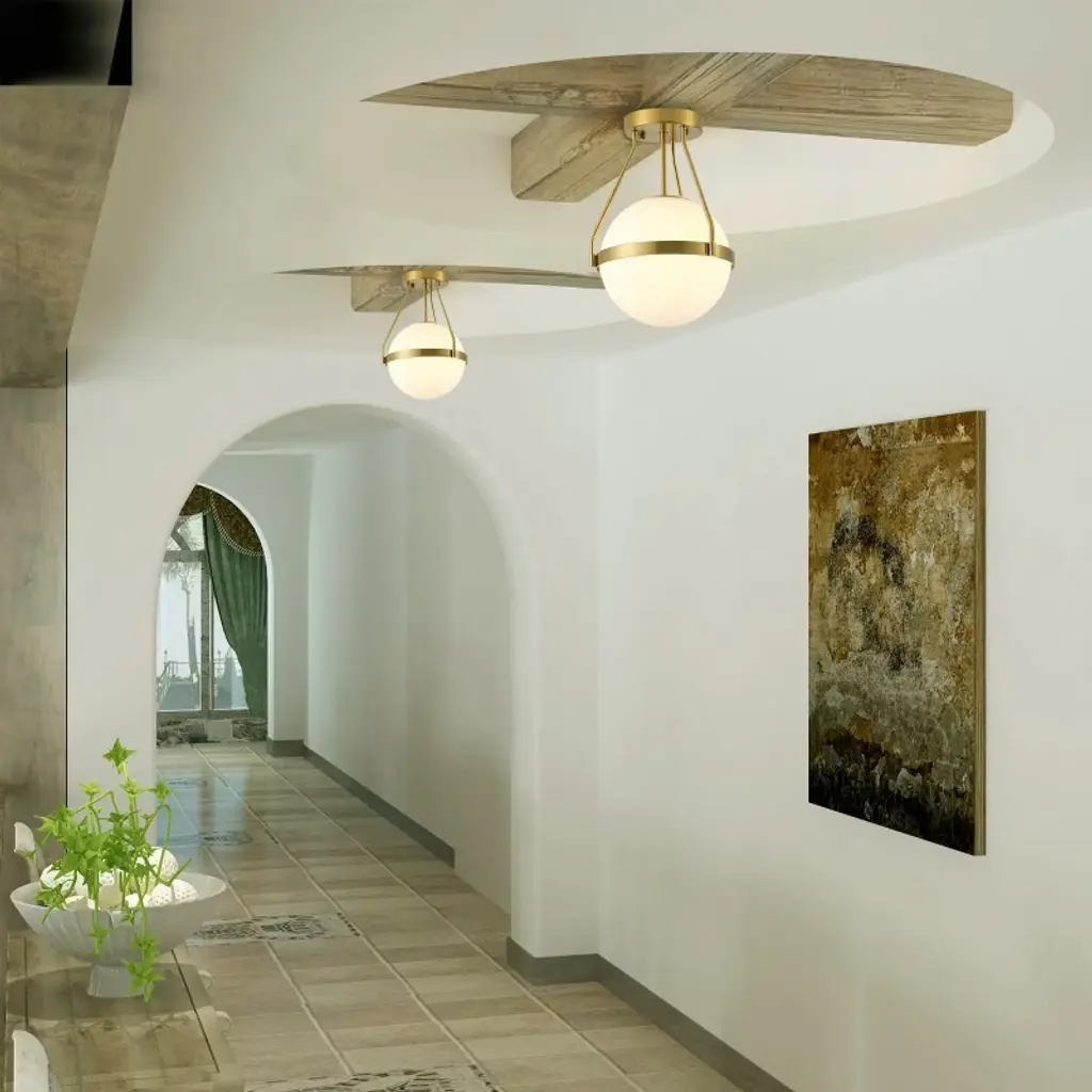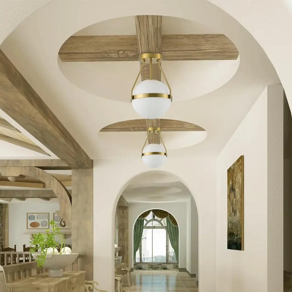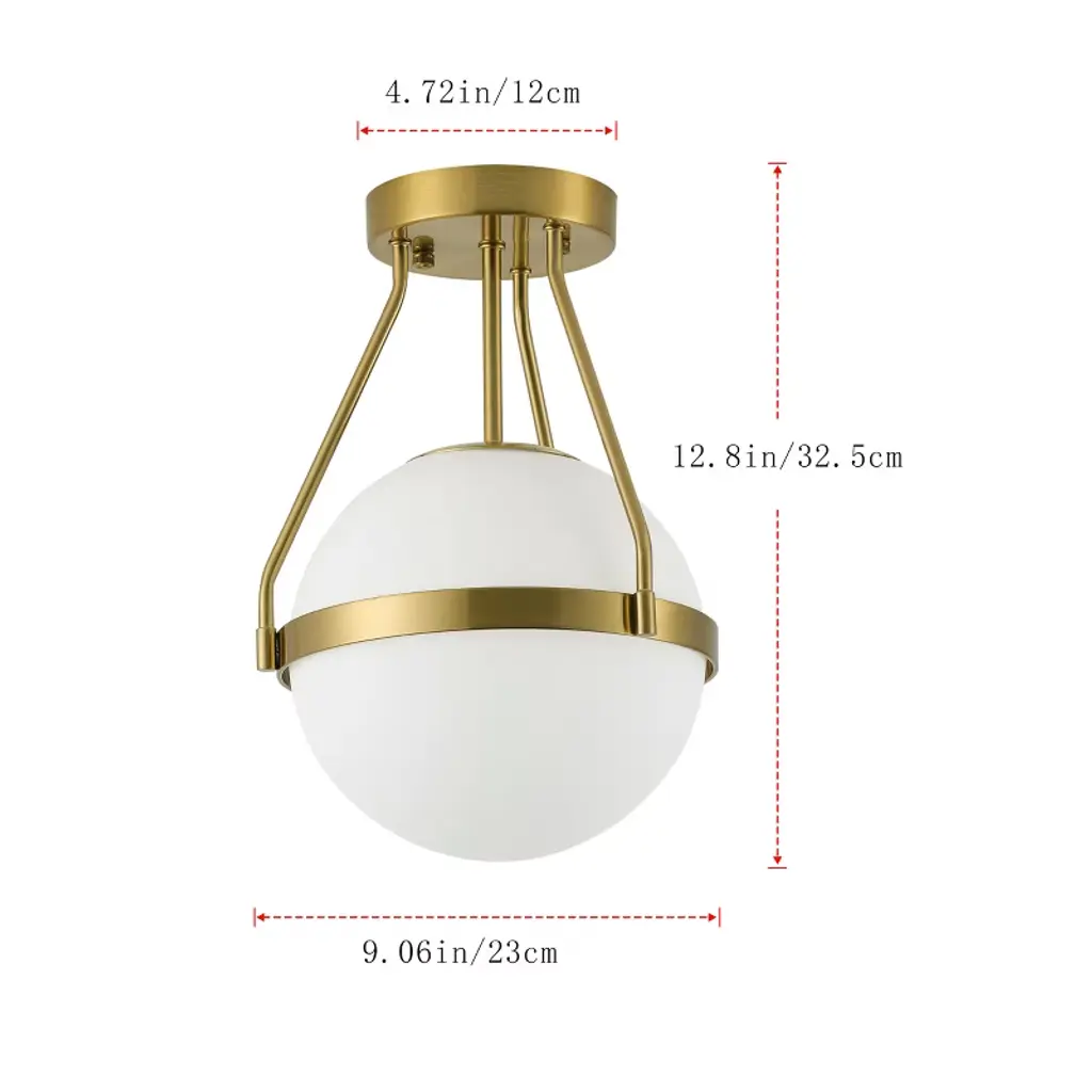 Dewdrop Modern Ceiling Light 1-light Brass Iron Frame With White Glass Shade Etl Certified For Bedroom Kitchen