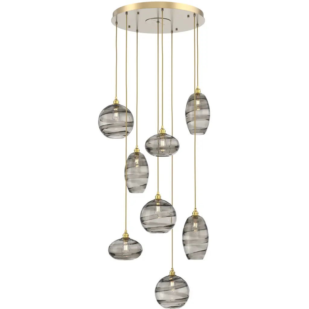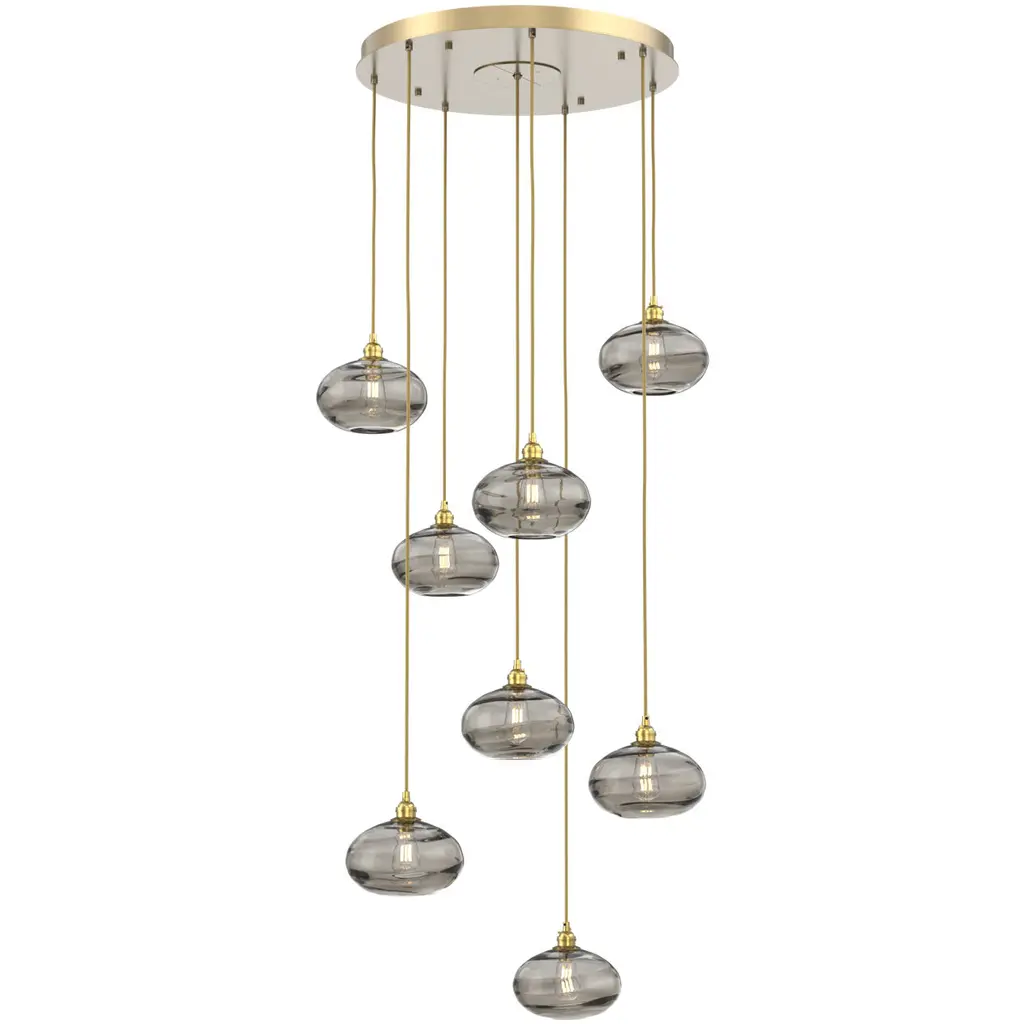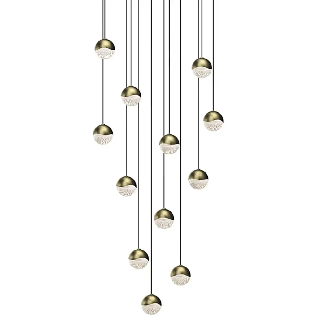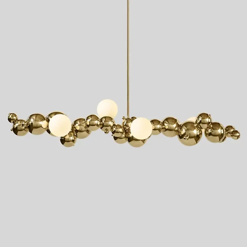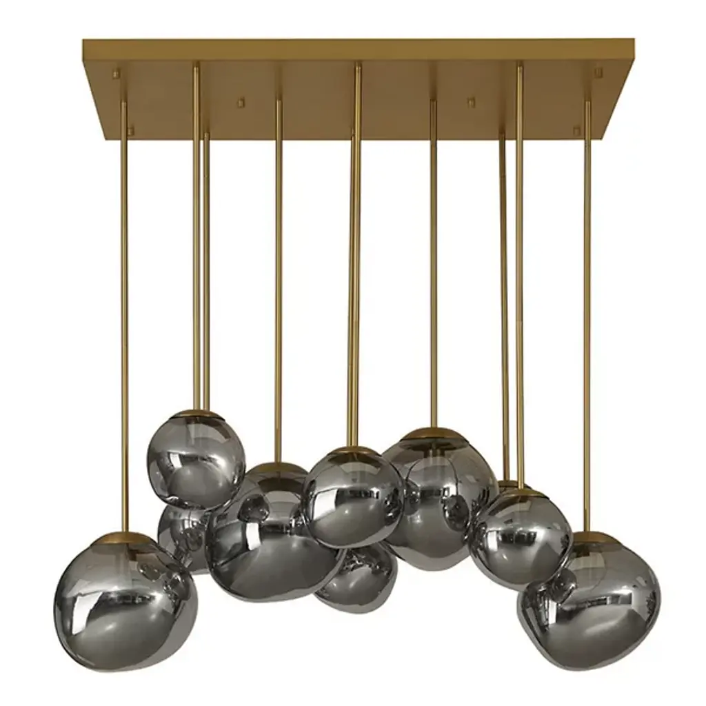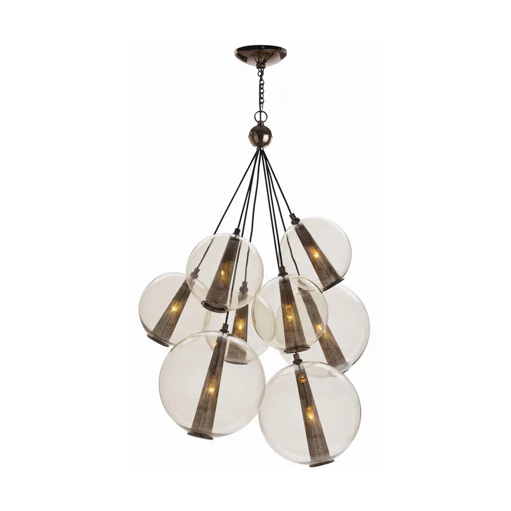 The Dionis Linear Suspension from Sunpan plays with spatial perception through a crafty arrangement of smoked glass globes. Multiple spheres in two distinct sizes hang from slim metal rods at varying heights, creating an organic cluster effect that defies rigid symmetry. Each glass globe mimics the inconsistent yet refined quality of hand-blown glass, with subtle variations in the smoky finish. The iron frame, finished in brushed gold, offers adjustable rods that allow customization of the hanging height. This hardwired ceiling fixture updates an ordinary dining area or entryway through its translucent smoke-tinted spheres.
