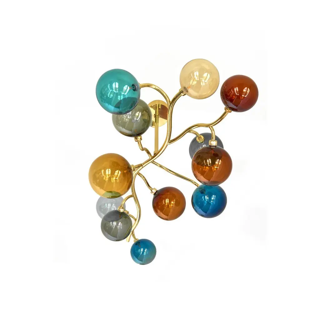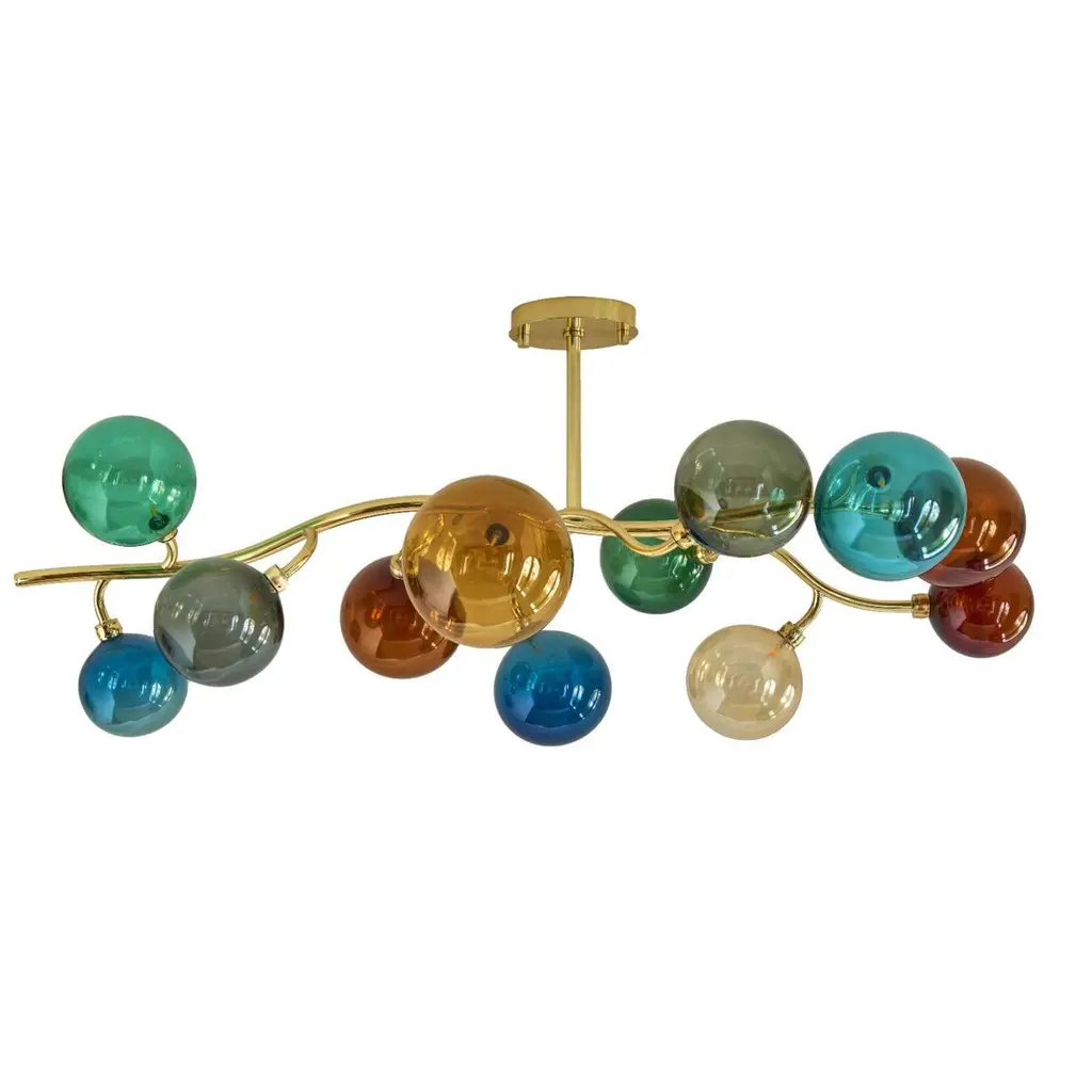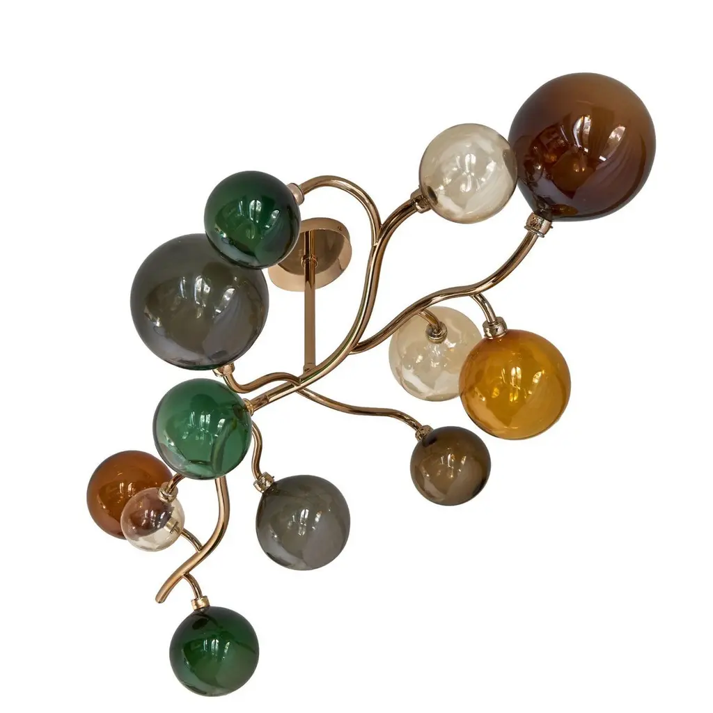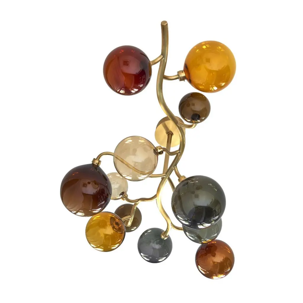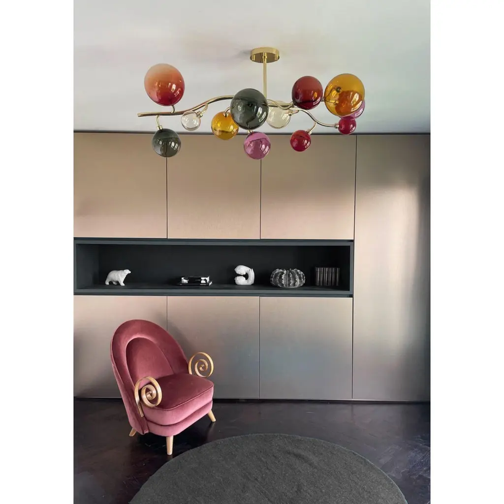 Dionysos ceiling lamp #12 by Emilie LemardeleyDimensions: D120 x W60 x H40 cm.Materials: brass and hand blown glass. Led 3W in each glass globes 36W Led, warm whiteWeight: 10 kgThe Dionysos lightings pay hommage to their namesake, the Greek God of Wine. They are shaped to look like a bunch of grapes and evoke the jubilation and abundance of a Greek banquet. Each item of the Dionysos collection is made to order by the hands of the best artisans. Thanks to its modular design, the Dionysos chandelier can be customized to perfectly fit the room where it is going.The Lemardeley workshop will study any custom request regarding dimensions, shape, number of lights, as well as custom finishes.All our lamps can be wired according to each country. If sold to the USA it will be wired for the USA for instance.Designed as jewellery for the interior, the Lemardeley’s creations reflect French craftsmanship infused with elegance and refinement. Based in France, near Paris, Lemardeley provokes reflection and reverie through its handmade collections by carefully selected craftsmen. Lemardeley invites us into a dreamlike universe; we dance with bright mobiles, dream of chandeliers with colored bubbles and travel coiled in the hollows of a winged sofa.Inspired by Etruscan jewelry and Greek mythology, Lemardeley’s pieces are treasures whose brilliance is enhanced by the gesture of the hand that designed them. Emilie Lemardeley has an atypical path as a designer. She studied literature, and political sciences, then hopped to Sotheby’ s in London and finally graduated in France at Olivier de Serres. Very quickly, she createsher own brand and offer her original universe to an international clientele.The Lemardeley pieces are all narrative and generous. They offer several levels of reading, ranging from primary functionality to symbol. The talent of the designer lays in her ability to awake, with harmonious colors and balanced materials, the reminiscences of our Western cultures.