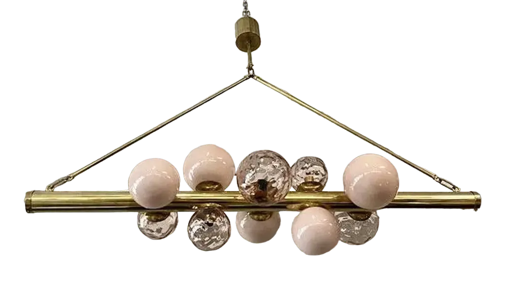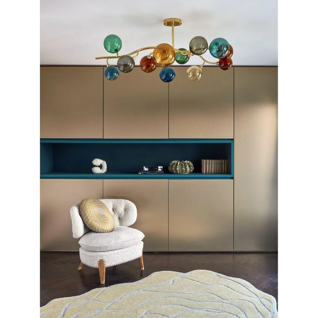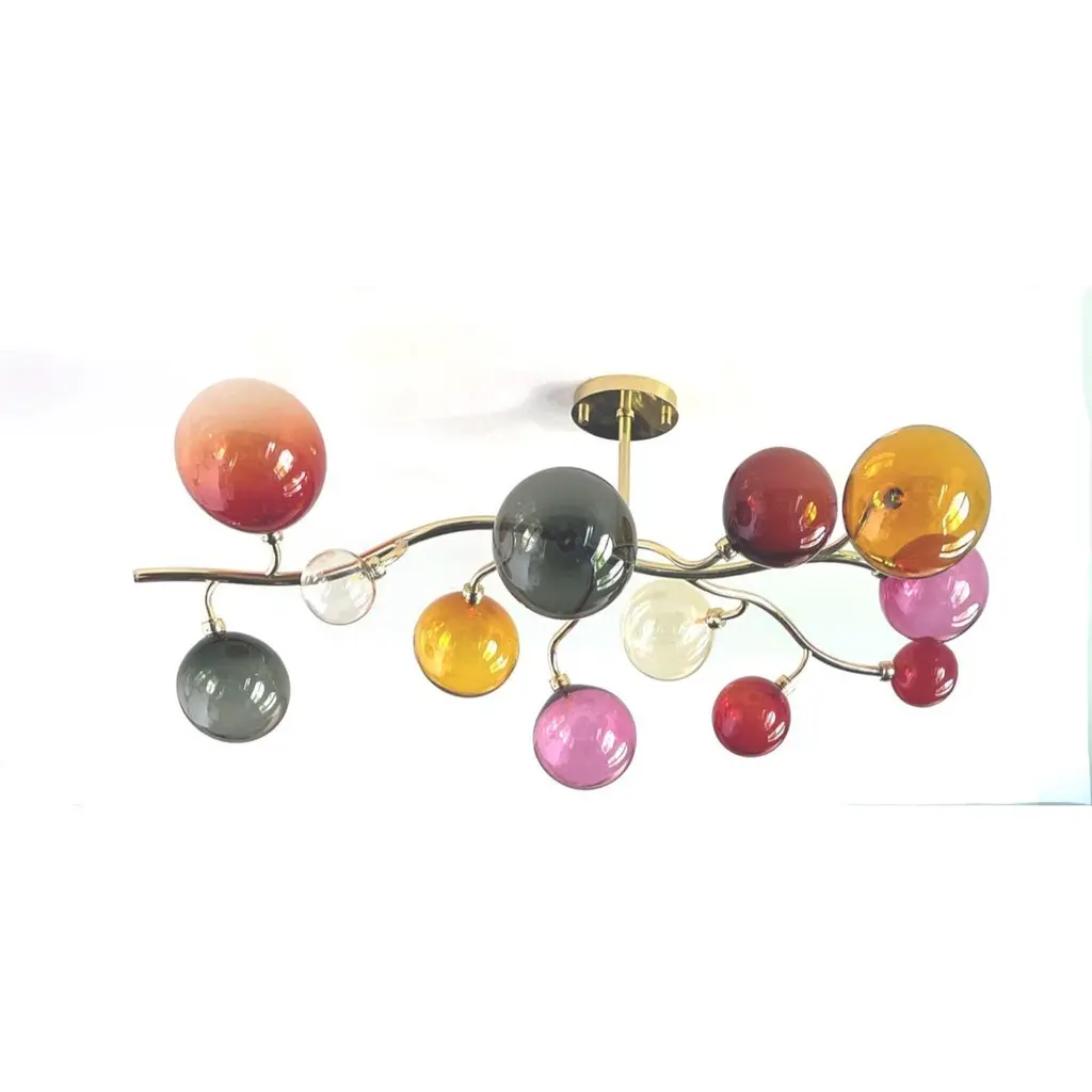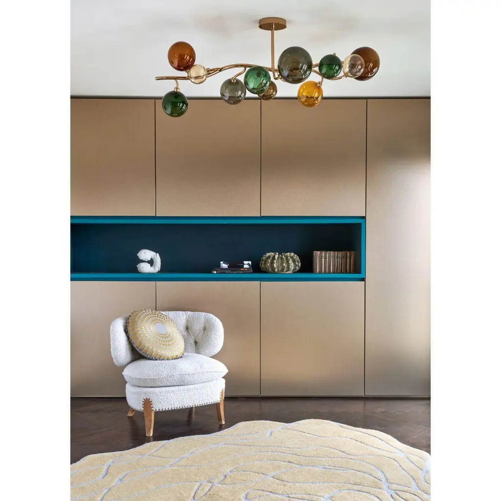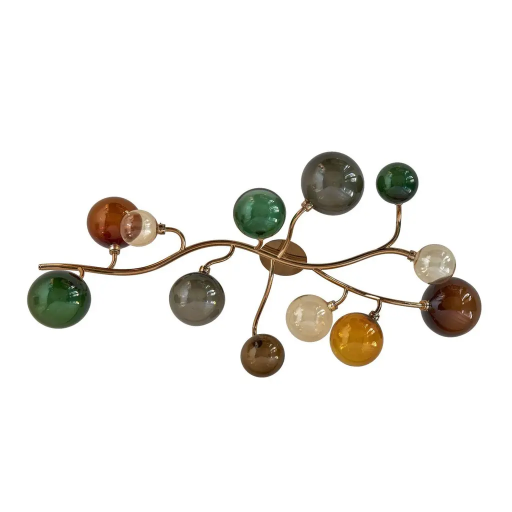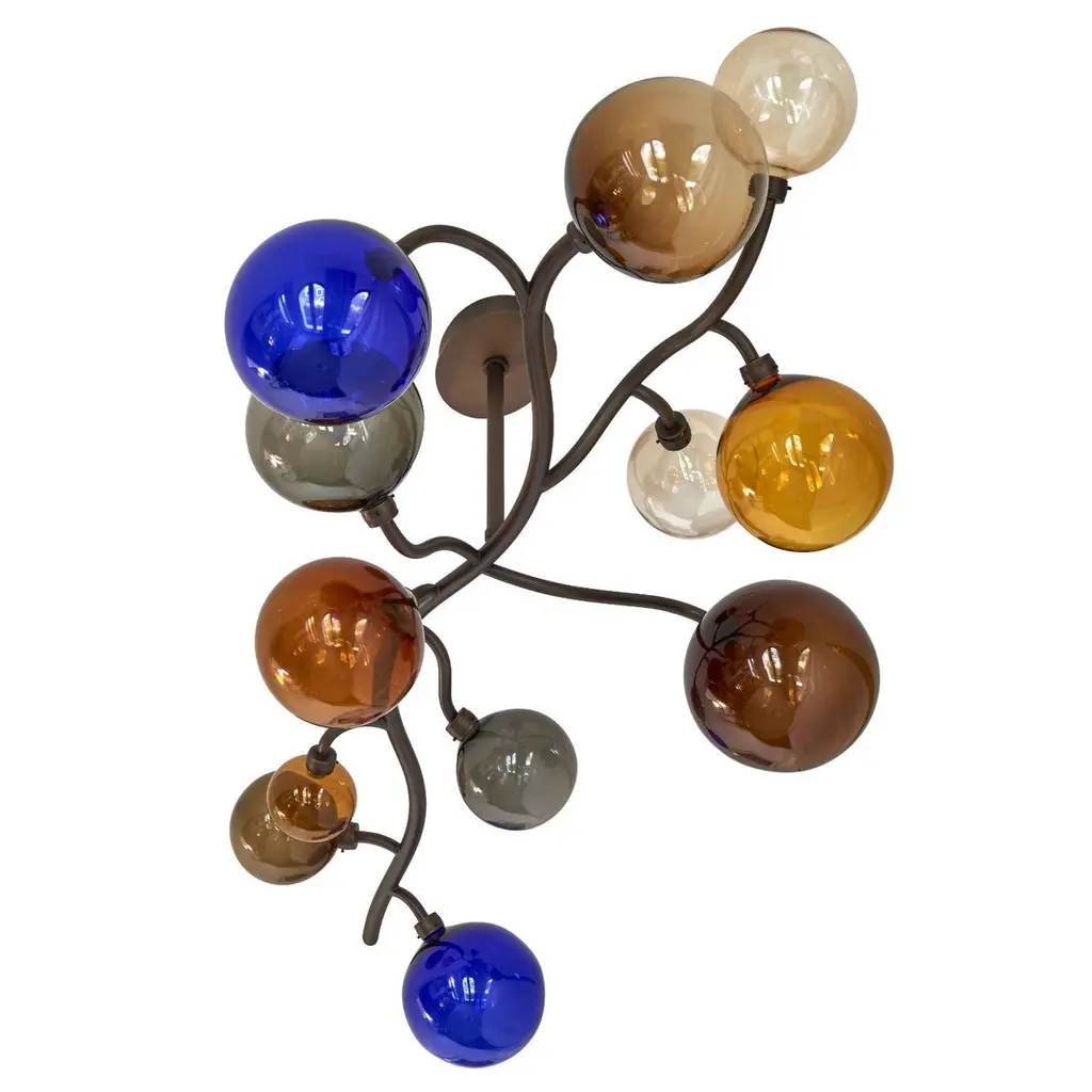 Dionysos ceiling lamp #12 by Emilie LemardeleyDimensions: D120 x W60 x H40 cm.Materials: brass and hand blown glass. Led 3W in each glass globes 36W Led, warm whiteWeight: 10 kgThe Dionysos lightings pay hommage to their namesake, the Greek God of Wine. They are shaped to look like a bunch of grapes and evoke the jubilation and abundance of a Greek banquet. Each item of the Dionysos collection is made to order by the hands of the best artisans. Thanks to its modular design, the Dionysos chandelier can be customized to perfectly fit the room where it is going.The Lemardeley workshop will study any custom request regarding dimensions, shape, number of lights, as well as custom finishes.All our lamps can be wired according to each country. If sold to the USA it will be wired for the USA for instance.Designed as jewellery for the interior, the Lemardeley’s creations reflect French craftsmanship infused with elegance and refinement. Based in France, near Paris, Lemardeley provokes reflection and reverie through its handmade collections by carefully selected craftsmen. Lemardeley invites us into a dreamlike universe; we dance with bright mobiles, dream of chandeliers with colored bubbles and travel coiled in the hollows of a winged sofa.Inspired by Etruscan jewelry and Greek mythology, Lemardeley’s pieces are treasures whose brilliance is enhanced by the gesture of the hand that designed them. Emilie Lemardeley has an atypical path as a designer. She studied literature, and political sciences, then hopped to Sotheby’ s in London and finally graduated in France at Olivier de Serres. Very quickly, she createsher own brand and offer her original universe to an international clientele.The Lemardeley pieces are all narrative and generous. They offer several levels of reading, ranging from primary functionality to symbol. The talent of the designer lays in her ability to awake, with harmonious colors and balanced materials, the reminiscences of our Western cultures.