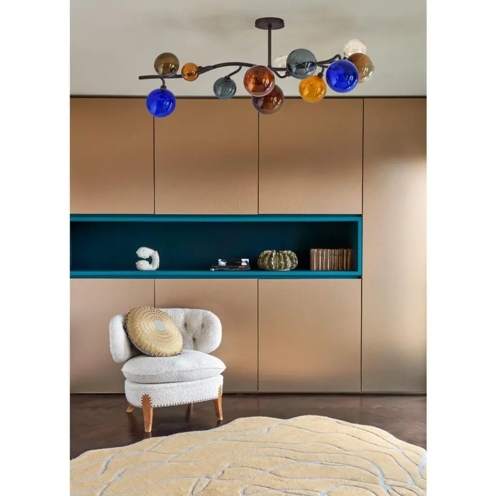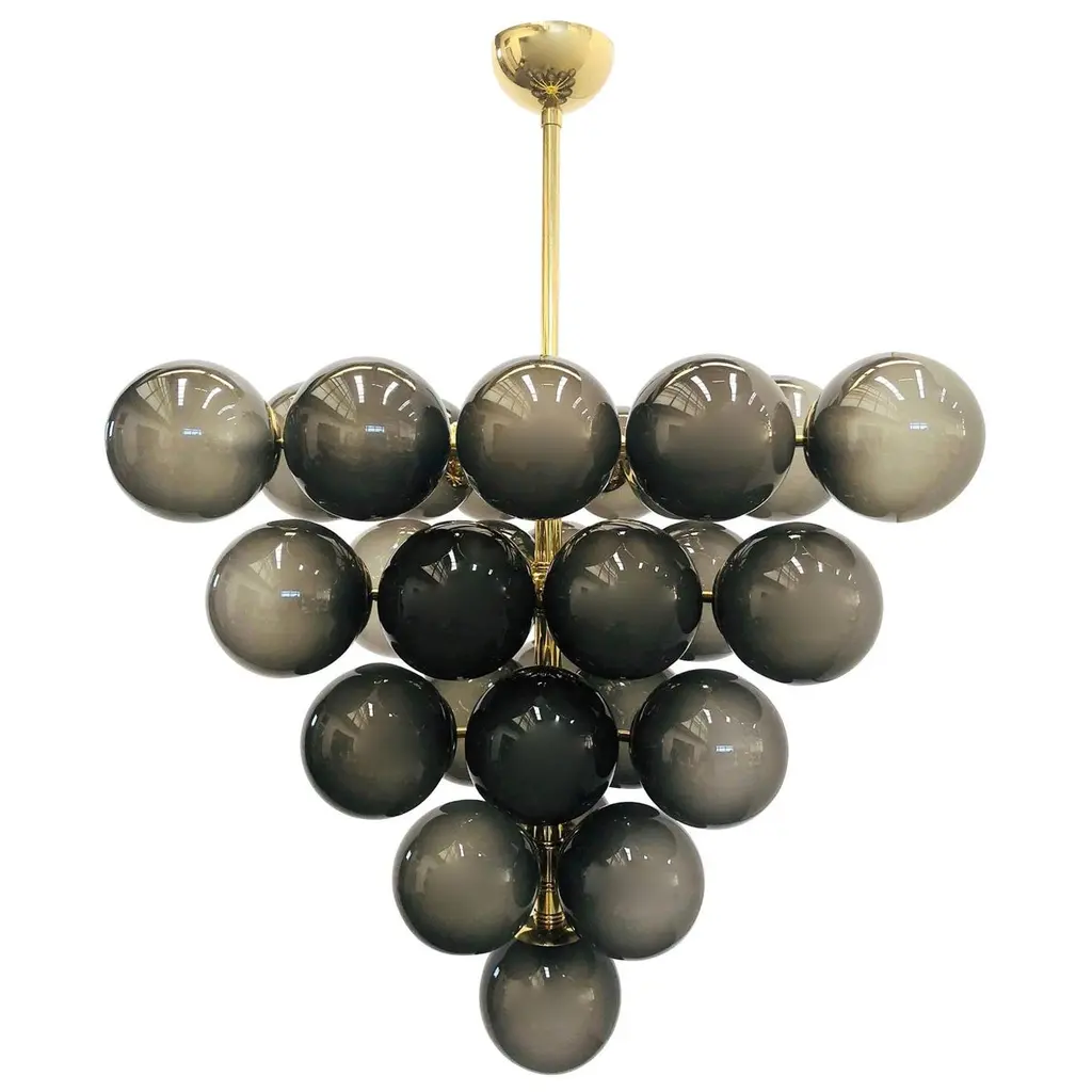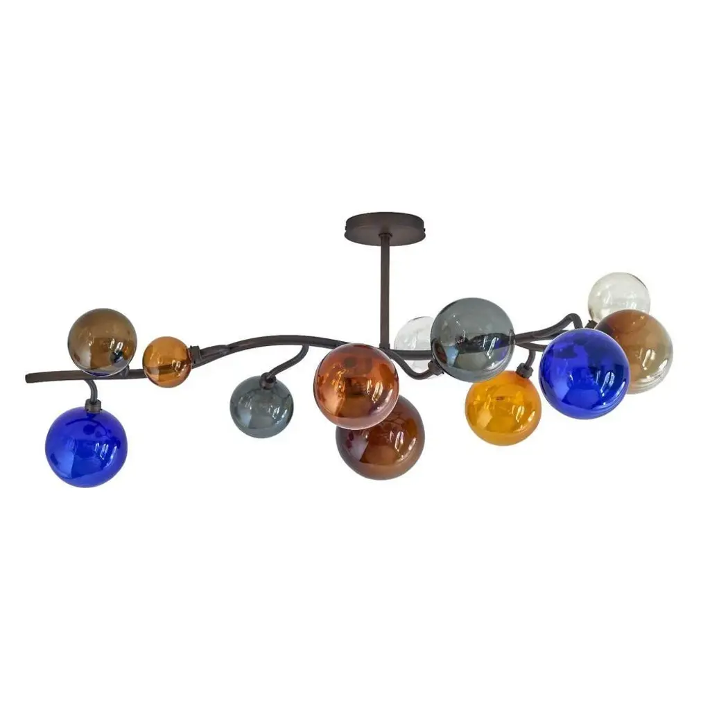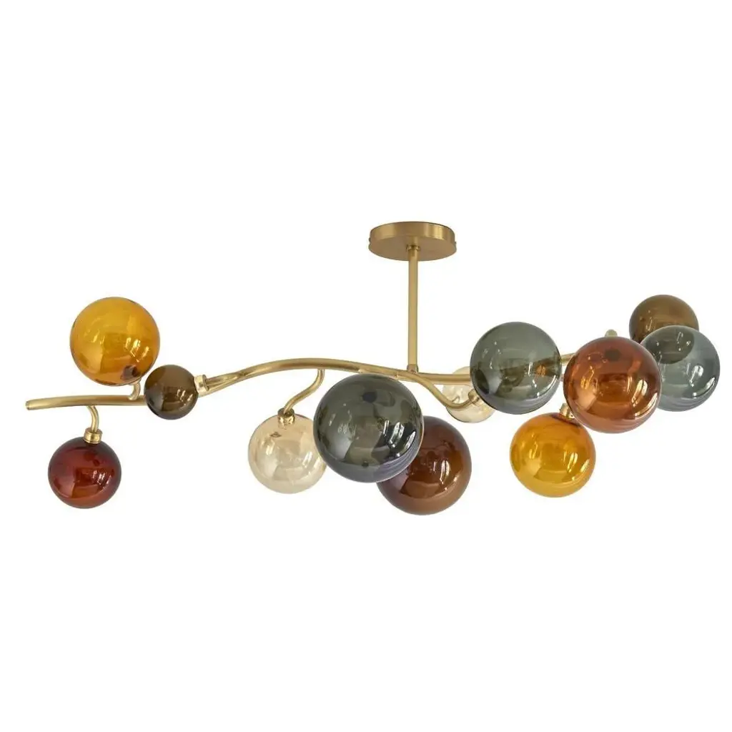 Dionysos ceiling lamp #12 by emilie lemardeley dimensions: d120 x w60 x h40 cm. Materials: brass and hand blown glass. Led 3w in each glass globes 36w led, warm white weight: 10 kg the dionysos lightings pay hommage to their namesake, the greek god of wine. They are shaped to look like a bunch of grapes and evoke the jubilation and abundance of a greek banquet. Each item of the dionysos collection is made to order by the hands of the best artisans. Thanks to its modular design, the dionysos chandelier can be customized to perfectly fit the room where it is going. The lemardeley workshop will study any custom request regarding dimensions, shape, number of lights, as well as custom finishes. All our lamps can be wired according to each country. If sold to the usa it will be wired for the usa for instance. up to 250v (europe/uk standard).