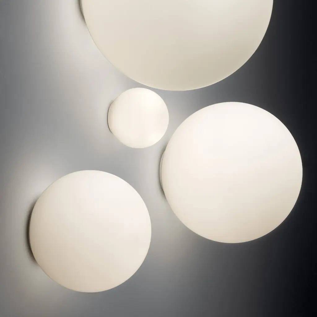The Dioscuri 14 wall/ceiling lamp, designed by Michele De Lucchi in 2000 for the Italian company Artemide, provides smooth light diffused through a white, hand-blown opal glass shade. The round shape adds a playful touch to the lamp’s simple and calm design. The Dioscuri lamp can be mounted to both walls and ceilings, and thanks to its sealed structure, it is also suitable for outdoors and bathrooms. You can also combine together different sizes to lighten up bigger spaces in a unique style.