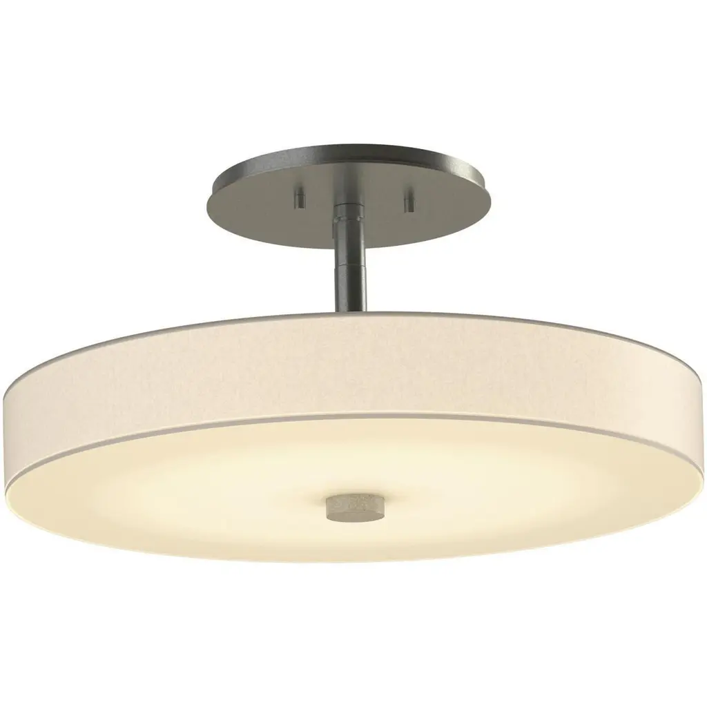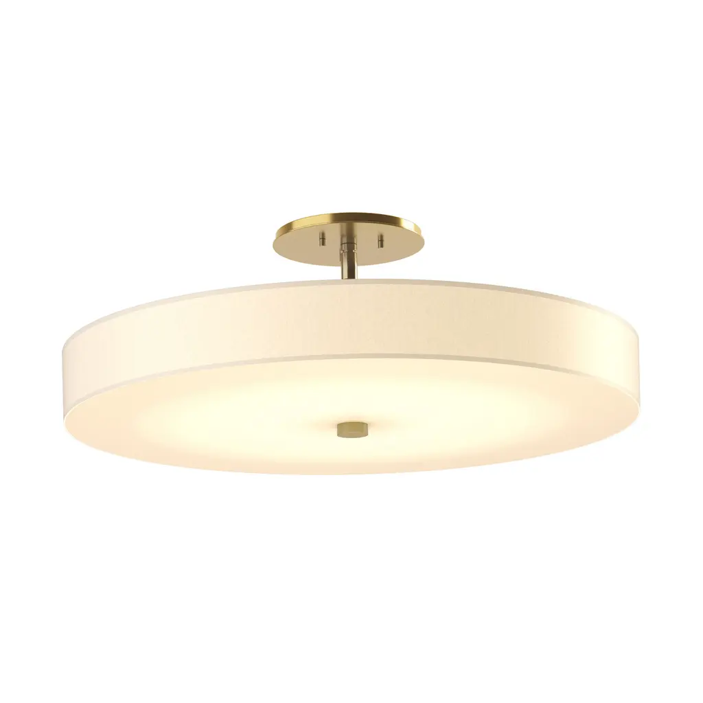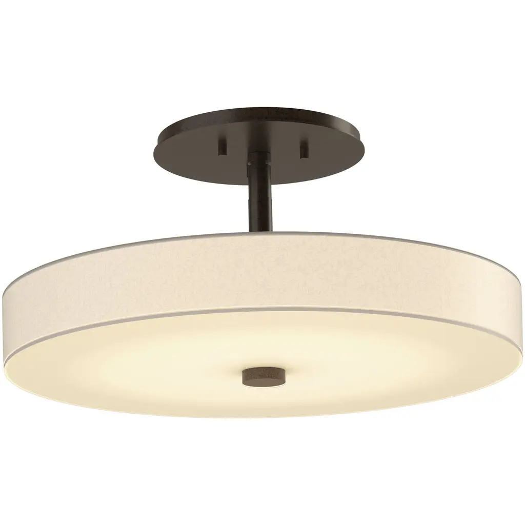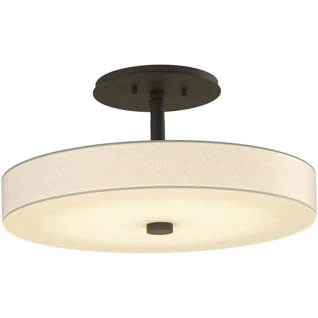 This large, sleek, contemporary, semi-flush ceiling light features a trimless drum shade and triac dimmable dedicated LED light sources. Created by our artisans here in Vermont, each fixture is finely crafted.