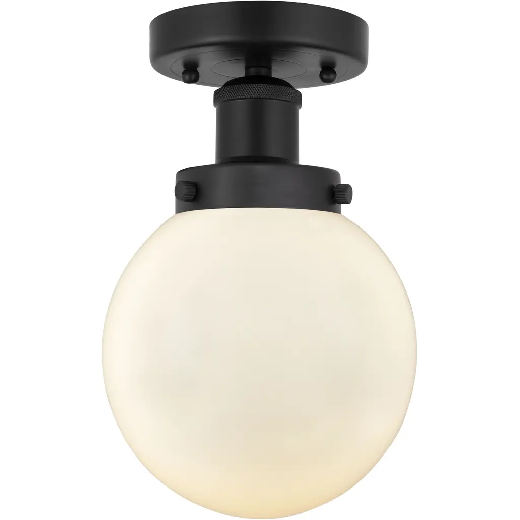 Dixon 1 Light 7.5 Inch Matte Black Semi-Flush Mount Ceiling Light, Damp