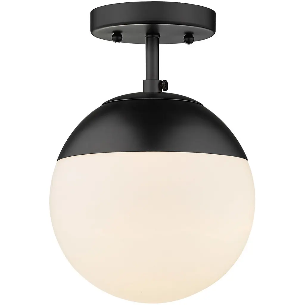 Bring contemporary elegance into your home with the Golden Lighting Dixon 1-light Semi-Flush Mount. Featuring an opal glass shade and a matte black frame, it creates a sophisticated and modern atmosphere.The opal glass shade offers a soft glow, illuminating your space while enhancing the minimalist aesthetic of the fixture. With its striking matte black finish, this light adds a bold contrast and a sleek look that complements diverse decor styles.Ideal for entryways, bedrooms, kitchens, and living areas, this fixture is rated for damp locations, making it suitable for spaces with occasional moisture. Requires 1 E26 medium base bulb (not included) with a maximum wattage of 60.Overall dimensions are 7.5"W x 10.5"H x 7.5"D, blending style and functionality effortlessly. Choose Golden Lighting to enhance your home with quality and beauty.