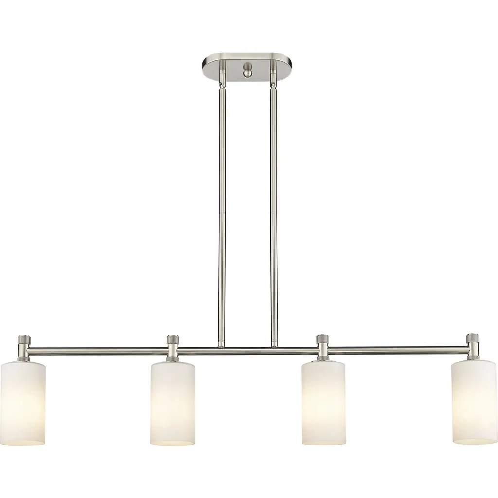 Details abound in the Crown Point Collection with an industrial take on modern sophistication. This stunning line of fixtures features cylindrical glass set in an updated restoration style frame with intricate knurling detail on the sockets, canopy, and finials.