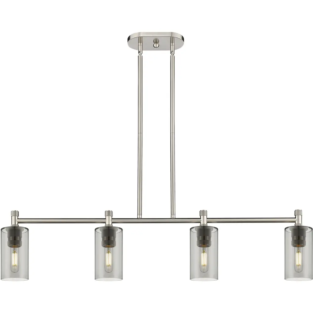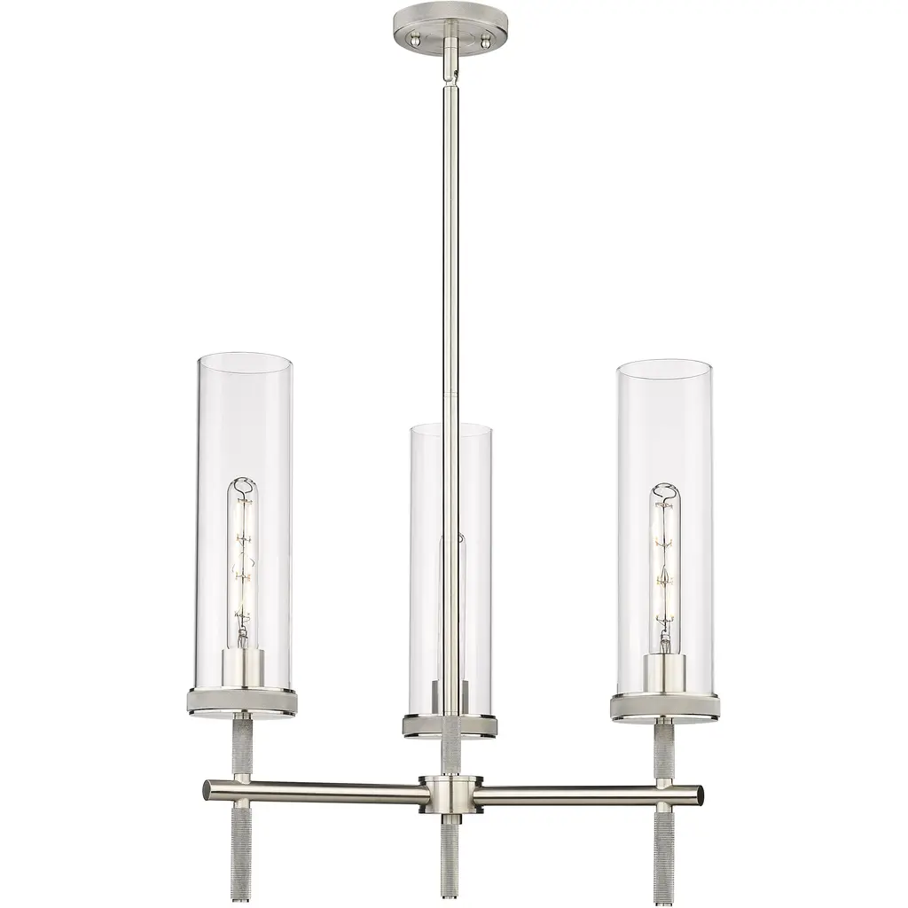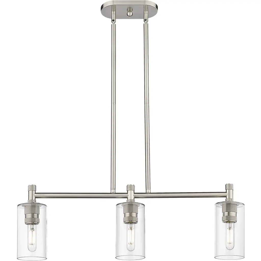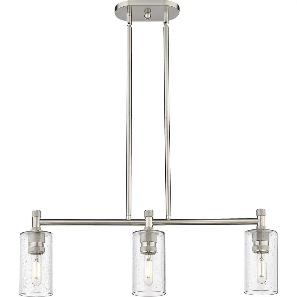 Details abound in the Crown Point Collection with an industrial take on modern sophistication. This stunning line of fixtures features cylindrical glass set in an updated restoration style frame with intricate knurling detail on the sockets, canopy, and finials.
