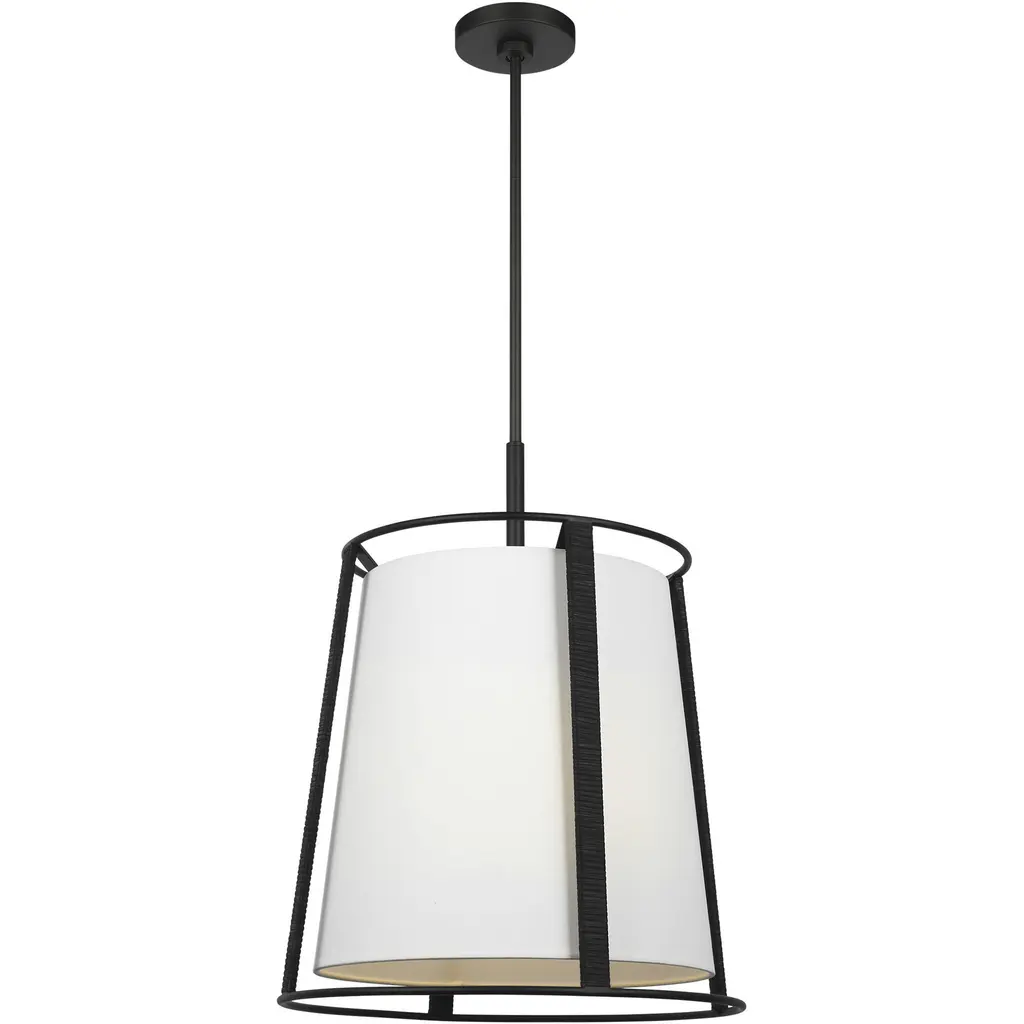 The Cortes series by Drew & Jonathan is the perfect addition to any home with minimalist or natural fiber decor. A sophisticated, finish complements the Midnight Black metal l used to line the white linen shade.