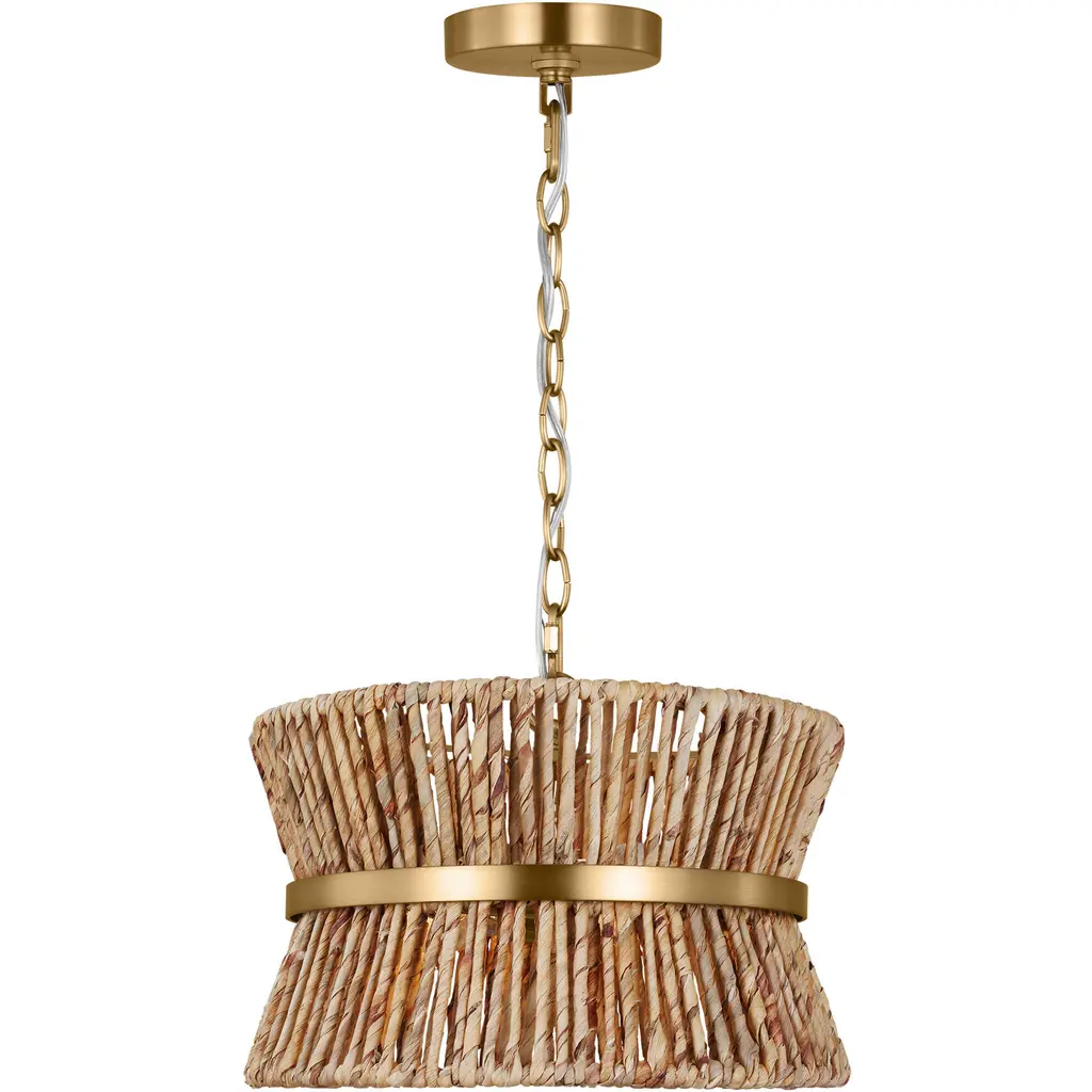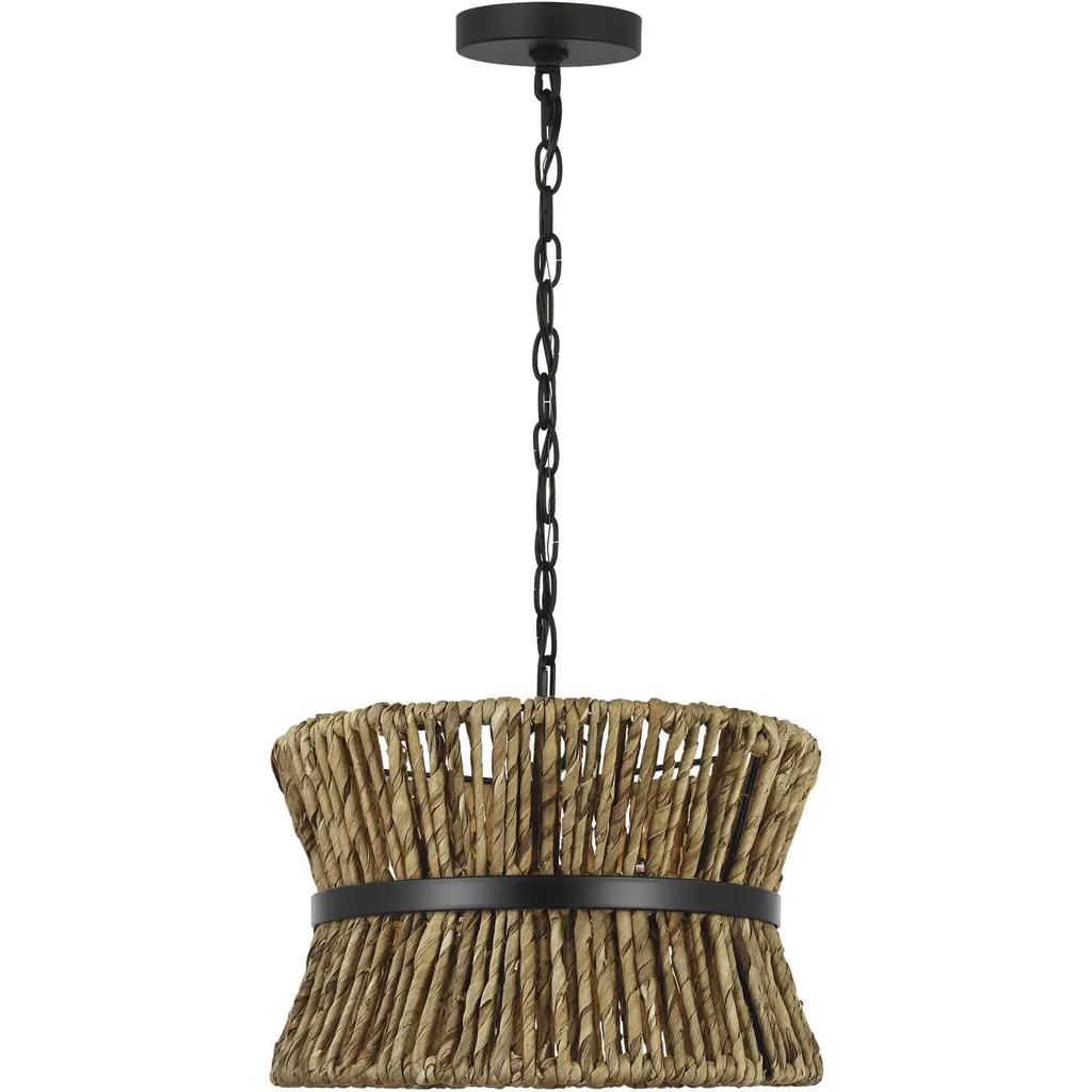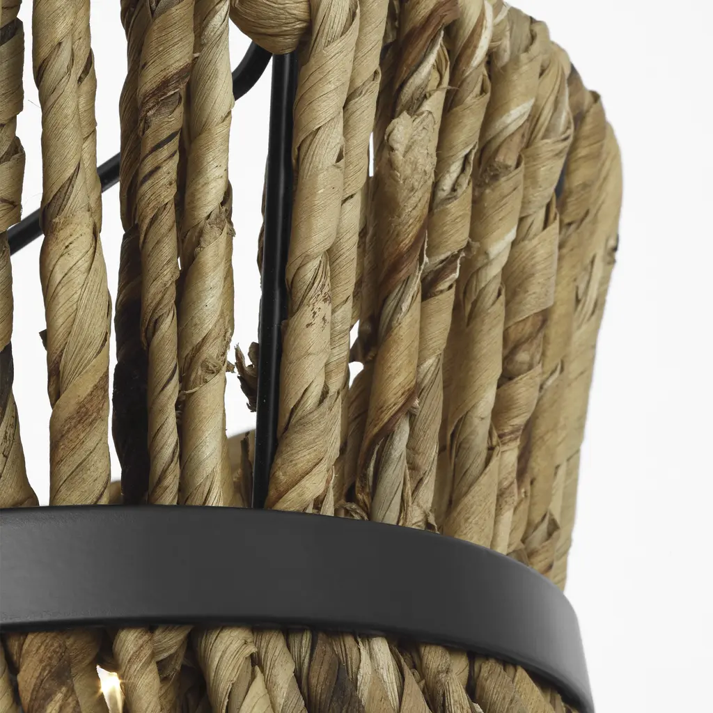 Make a bold style statement with the coastal-inspired organic Thurlo series by Drew & Jonathan Scott. Crafted of natural abaca rope, hand wrapped around the frame for a modern bohemian style and accented with a metal band for a tailored look. Filtering the light from within, each piece creates a play of light and shadow in a room, adding an inviting ambiance.