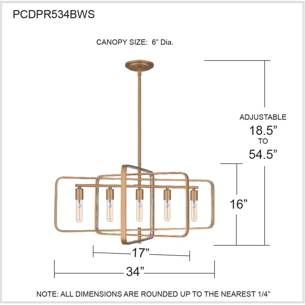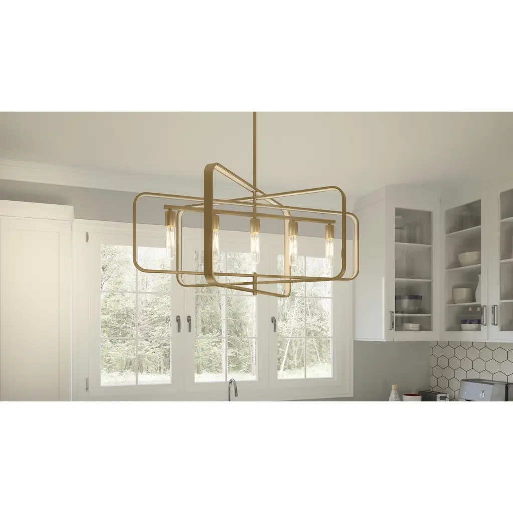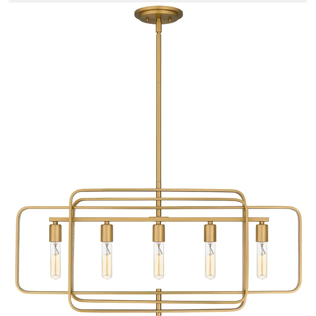 Dupree 5 Light 34 Inch Brushed Weathered Brass Island Light Ceiling Light