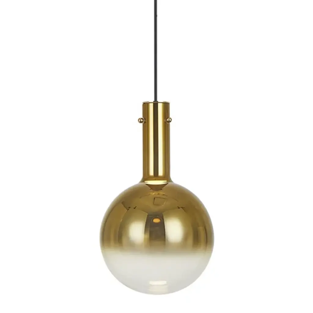 A harmonious balance between timeless elegance and contemporary design, this brass ceiling lamp features a round shape that envelopes a conic inner glass diffuser, creating a soft cloud surrounding the core of the lamp. An ideal complement to a modern decor, this piece was introduced at Milan Design Week 2018 and can be positioned on top of a dining table or combined with identical ones to light a long hallway or large living room.