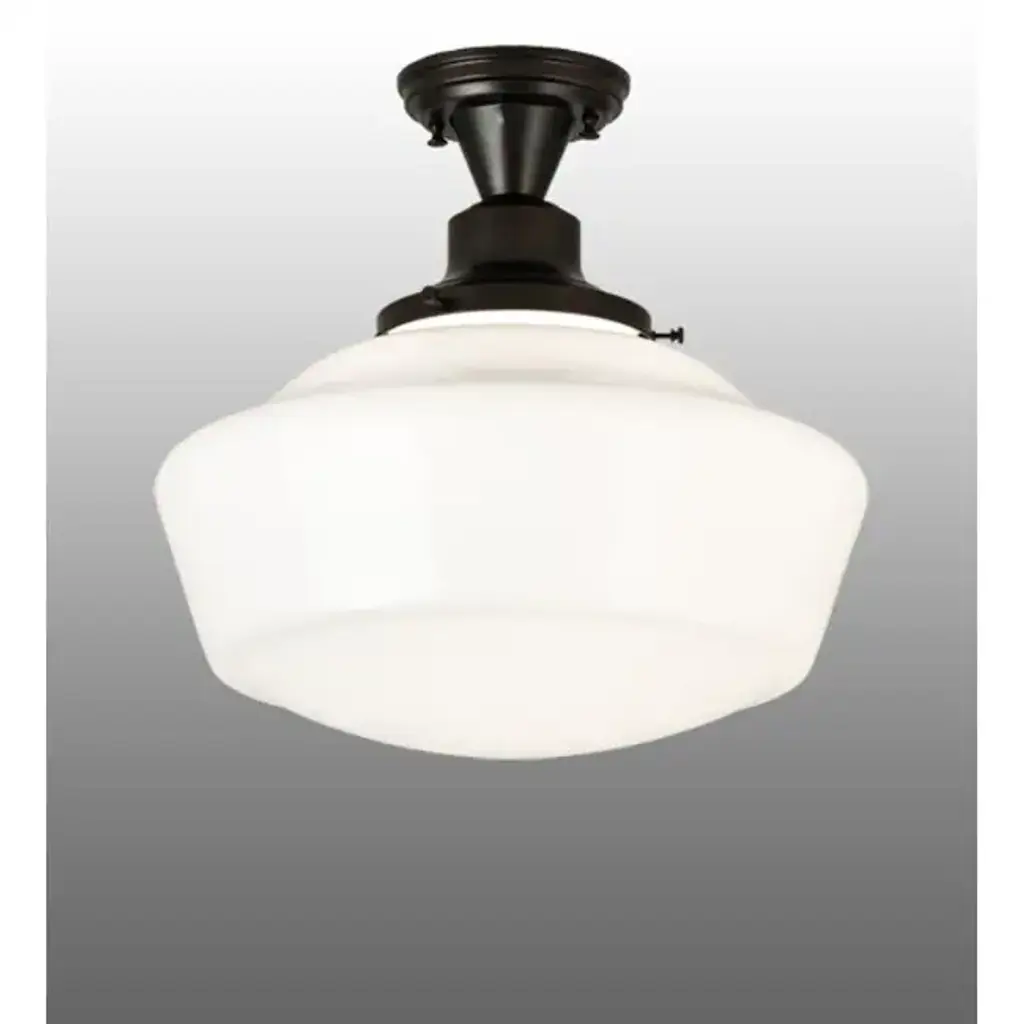 Add a touch of vintage charm to your home with the Eastgate semi-flush light's classic schoolhouse design. Its timeless shape and versatile finish make it a perfect addition to bedrooms, bathrooms, hallways, or entryways. Enjoy the warm and inviting illumination as the Eastgate light enhances your space with its nostalgic glow. FEATURES:• Antique gold finish offers a distinctive look and quality steel construction• White frosted opal glass provides bright illumination and a contemporary feel• Uses 1 x 60 watt E26 medium base bulb (not included); LED compatible• Dimmable for desired illumination levels when used with dimmable bulbs and compatible wall switch• 8.75-in W x 8.5-in H x 8.75-in D with 4.09-in W x 2.24-in H canopy• Shallow height makes it suitable for low ceiling spaces• Dry rated; ideal for dining rooms, kitchens, bedrooms, foyers, hallways, or any other dry area of your home• ETL rating demonstrates this product has met USA requirements for product safety standards• 1 Year limited warranty