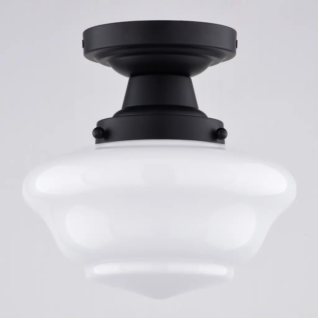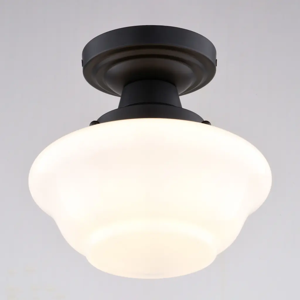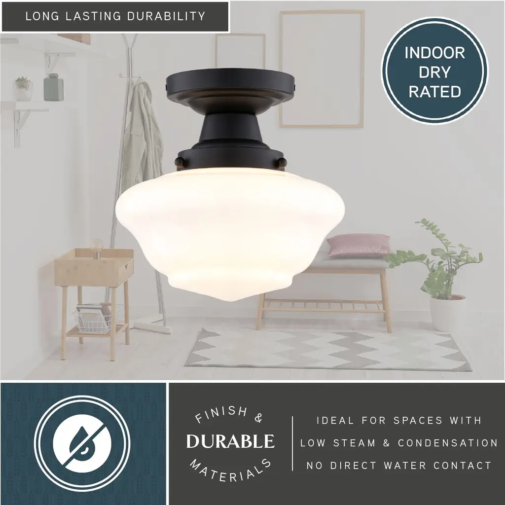 Eastgate 8.75-In W Traditional Semi Flush Mount Ceiling Light White Schoolhouse Glass - Matte Black - 8.75-In W X 8.5-In H X 8.75-In D