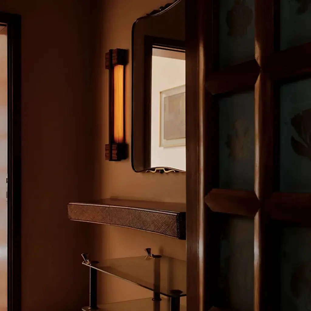 The Ecco LED Wall / Ceiling Light from In Common With shows off a unique geometry fusing warm wood bars and carefully-crafted glass made using experimental techniques. A rectangular fusion of wood and glass suspends LED lamping within, using a slender bar that separates different glass panes. Each fixture is ADA-compliant and damp-listed, allowing it to brighten any indoor wall or ceiling that needs a splash of light and artisanal presence.