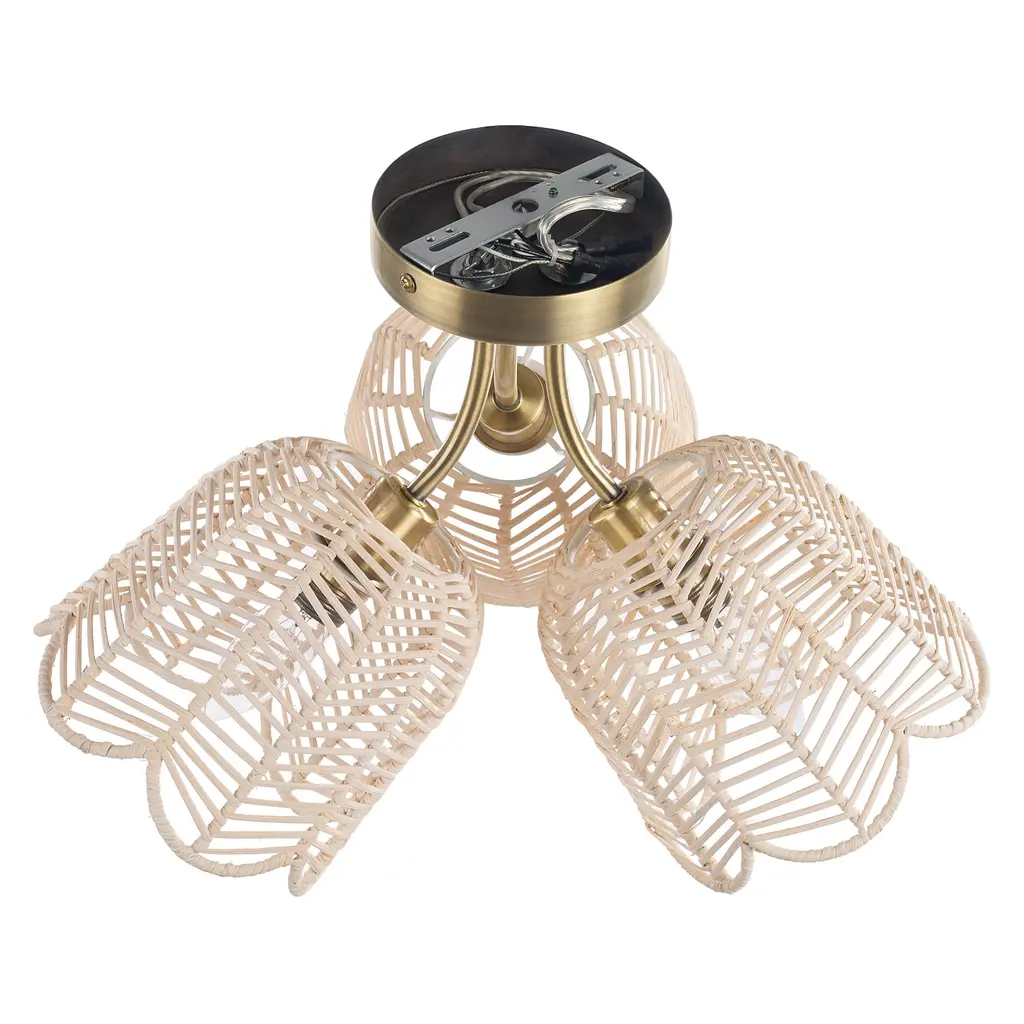 If you prefer a cottage style that's a little less "shabby" and a little more "chic," you'll love the look of this ceiling light. Featuring a brushed gold-tone circular metal fixture that extends three arms to hold three white, bell-shaped rattan shades, this hardwired ceiling light adds a little romance to a range of interior decor styles. The rattan shades’ open-weave design will create a soft glow when the light from each of the three 40-watt bulbs (not included) shines through. Hardwire this light directly into the ceiling above your bed, in your powder room or en suite, or in a kitchen or breakfast nook and enjoy the play of light and shadow that it provides.