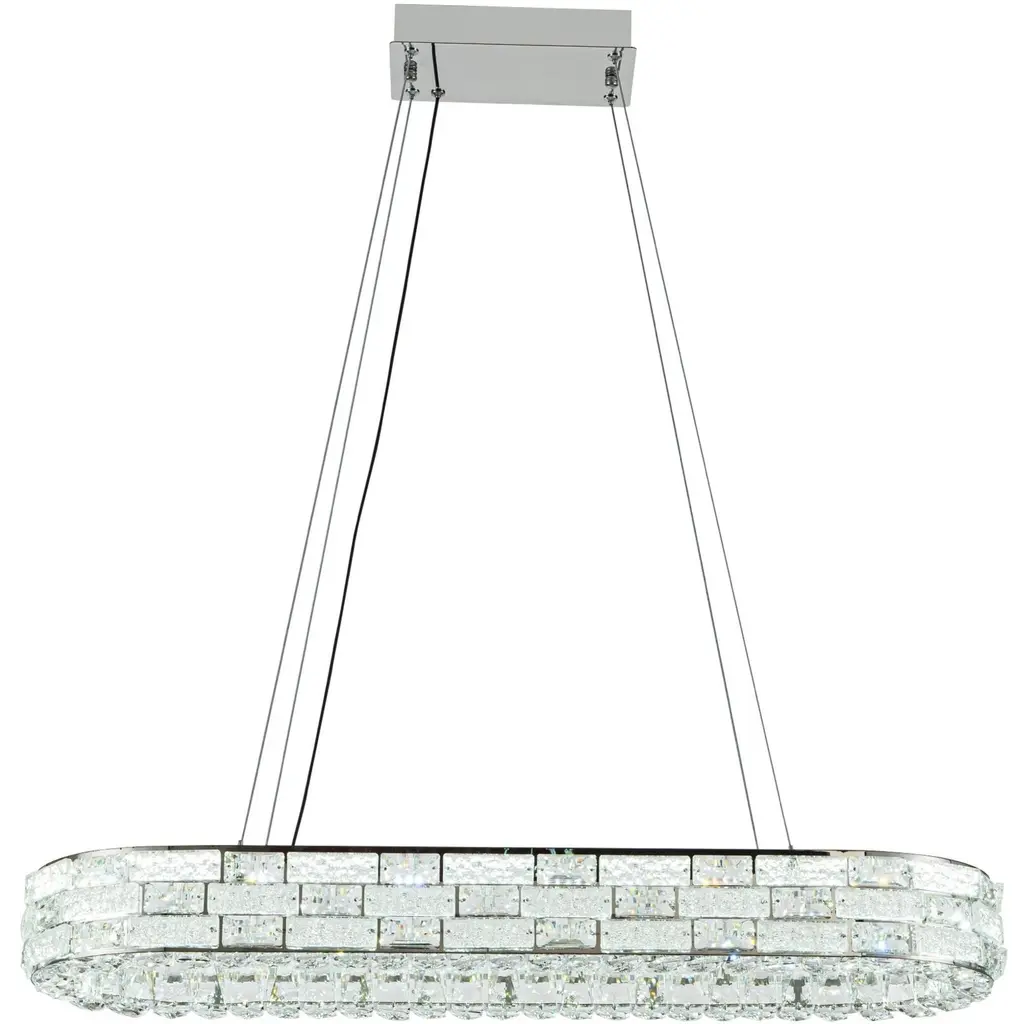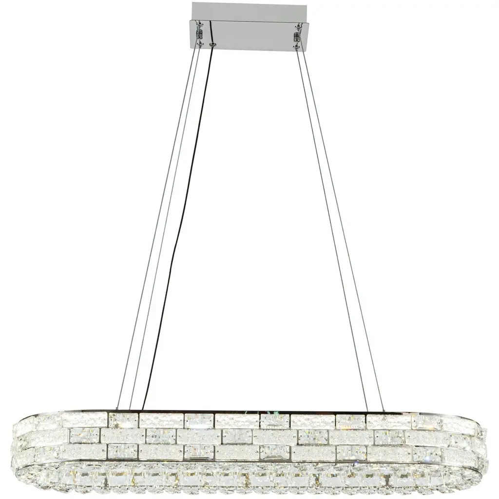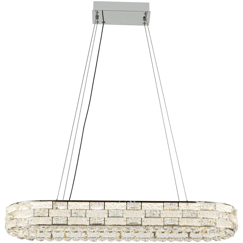 Glistening like a crown of starlight, this LED crystal linear island chandelier from the Elegance collection offers a breathtaking harmony of luxury and functionality. Its polished nickel frame embraces a dazzling array of crystals, while the 3CCT switch allows you to tailor the ambiance with warm, neutral, or cool light (3K, 4K, 5K). Suspended gracefully on aircraft-type cables with an intuitive push-pin system, it promises both beauty and effortless adjustment for any setting.