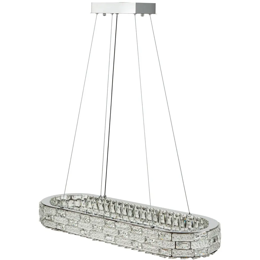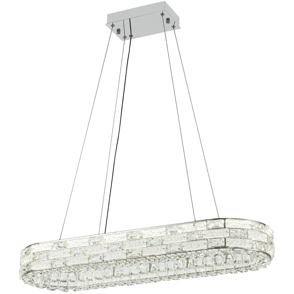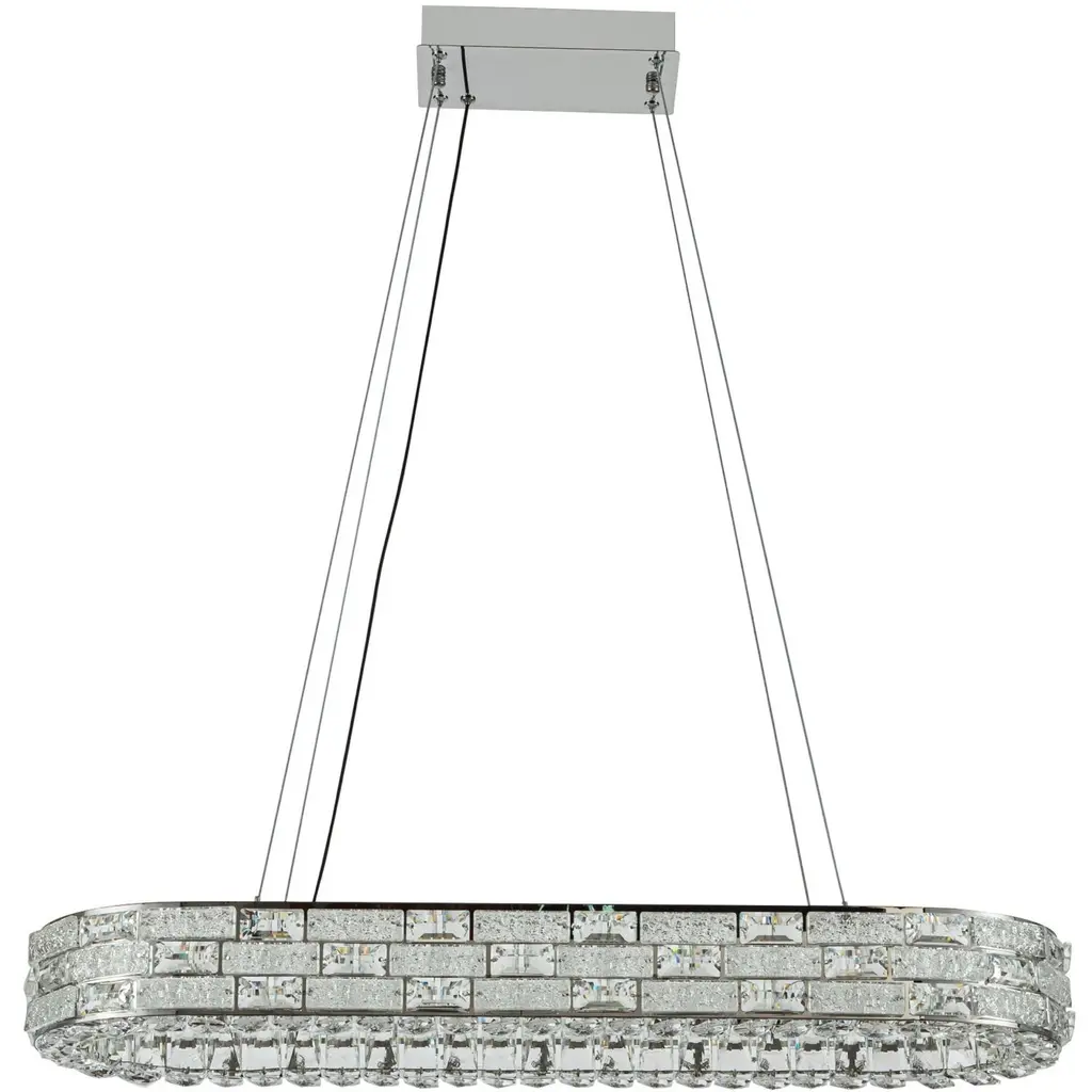 Glistening like a crown of starlight, this LED crystal linear island chandelier from the Elegance collection offers a breathtaking harmony of luxury and functionality. Its polished nickel frame embraces a dazzling array of crystals, while the 3CCT switch allows you to tailor the ambiance with warm, neutral, or cool light (3K, 4K, 5K). Suspended gracefully on aircraft-type cables with an intuitive push-pin system, it promises both beauty and effortless adjustment for any setting.