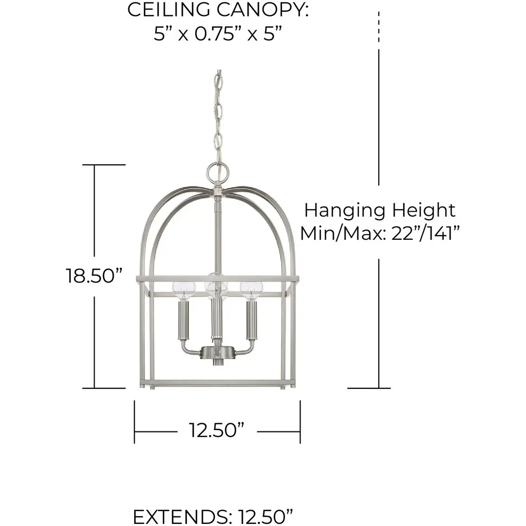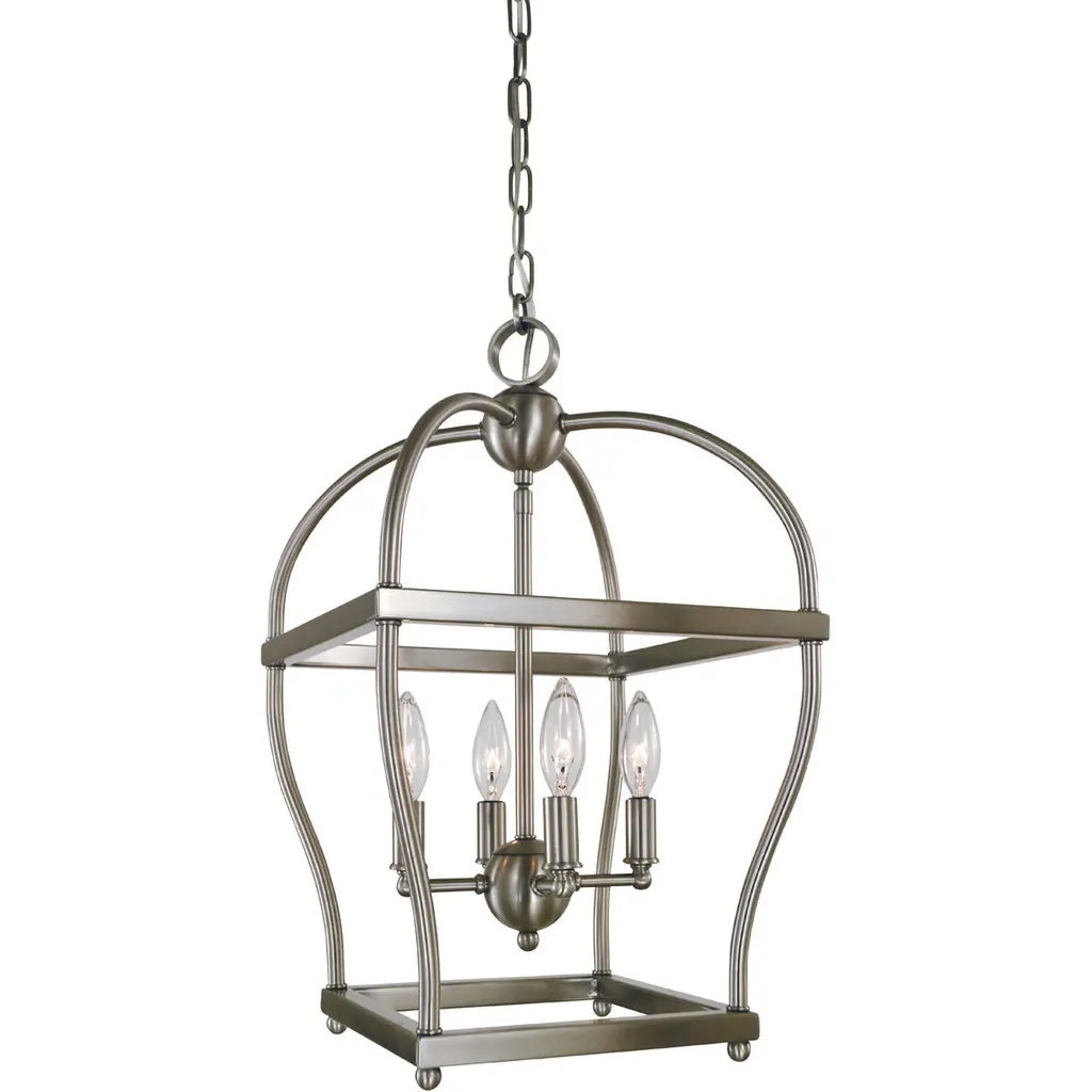 12" 4-Light Lantern Foyer Pendant in Brushed Nickel