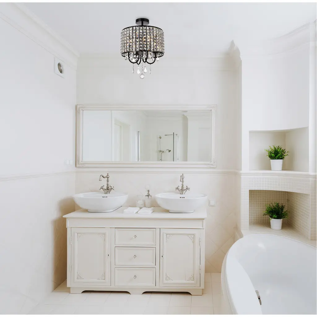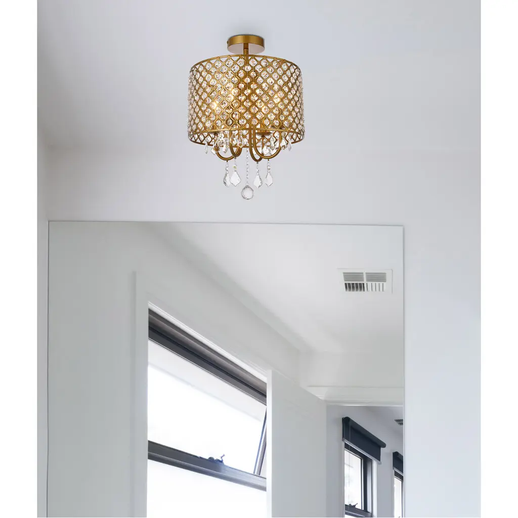 This 4 light semi-flush mount is sure to look great in your space. The circular canopy, small downrod, and sockets are made from metal of your choice of finish. It features a metal lattice shade that encases four sockets. This fixture takes four 40W bulbs, (not included) that wash your space in a bright glow. It's compatible with a dimmer switch, so you'll always have the right amount of light no matter the time of day.