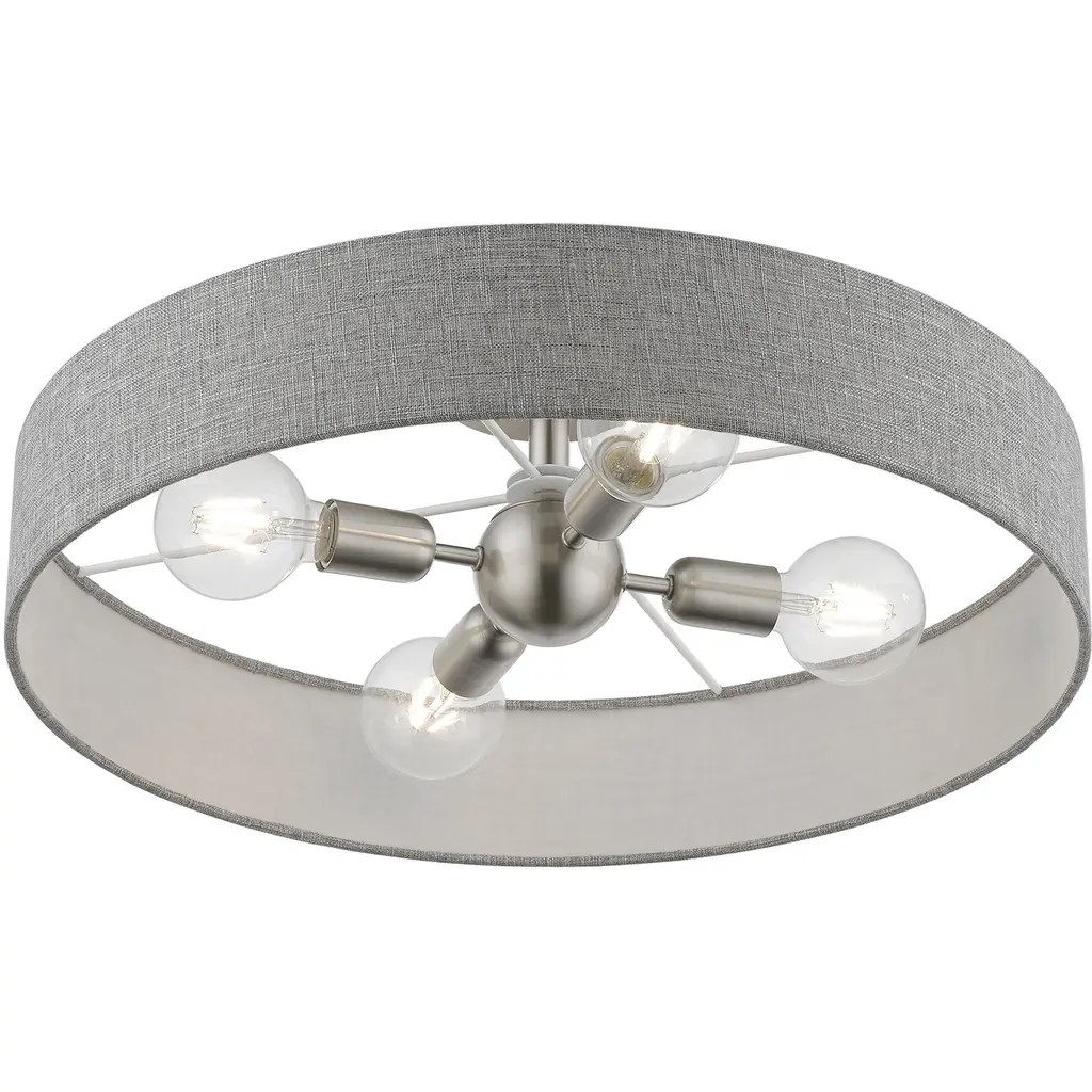 4 Light Brushed Nickel with Shiny White Accents Large Semi-Flush