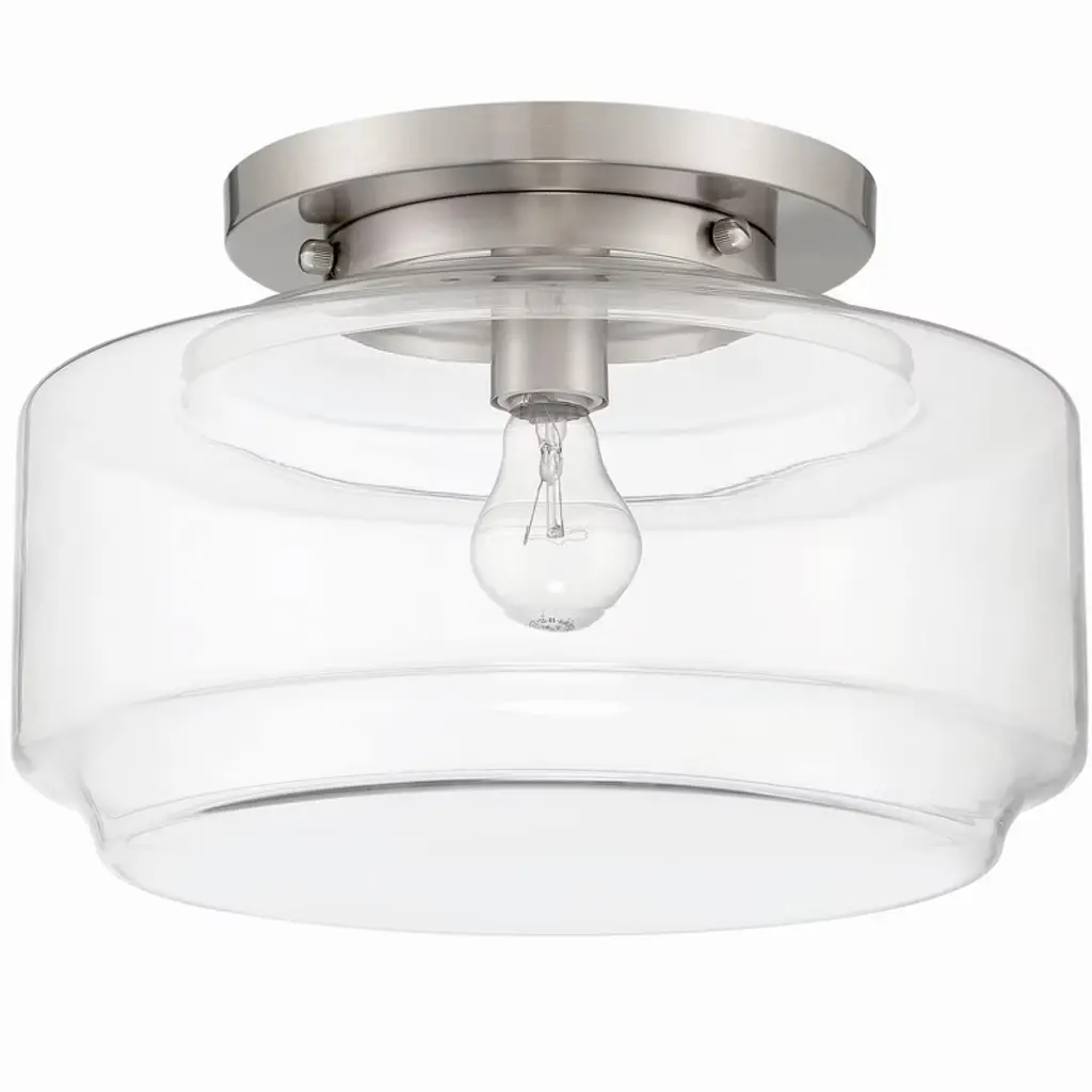 With the classic shape of the clear glass shade, Emma semi-flush mounts are a great way to enhance your home. The Brushed Gold, Matte Black, and Polished Nickel finishes ensure that Emma will work with any design aesthetic. Made from durable steel for years of enjoyment and illumination.
