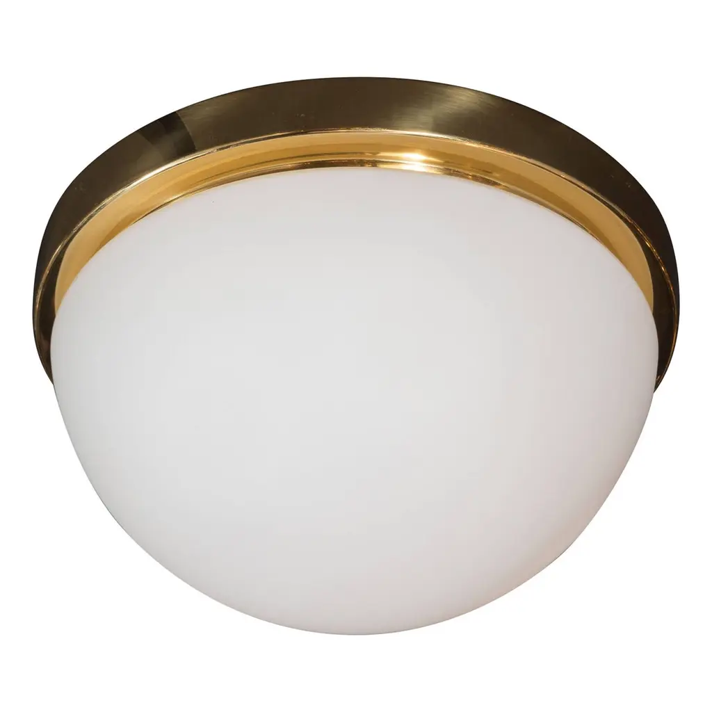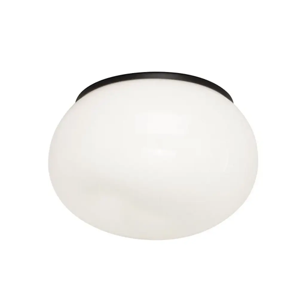 The Erasto Flush Mount Ceiling Light by Huxe presents a stylish contemporary character suitable for assorted indoor living spaces. Starting with a slim, circular metal canopy, it then places a single lamp beneath a rounded opal glass diffuser hand blown and featuring an inspired offset dent that adds a playful note to the clean-surfaced structure. The opal glass creates a translucent surface that is semi-permeable to the lamping, obscuring direct glare and exchanging it for a warm and pleasant glow below.