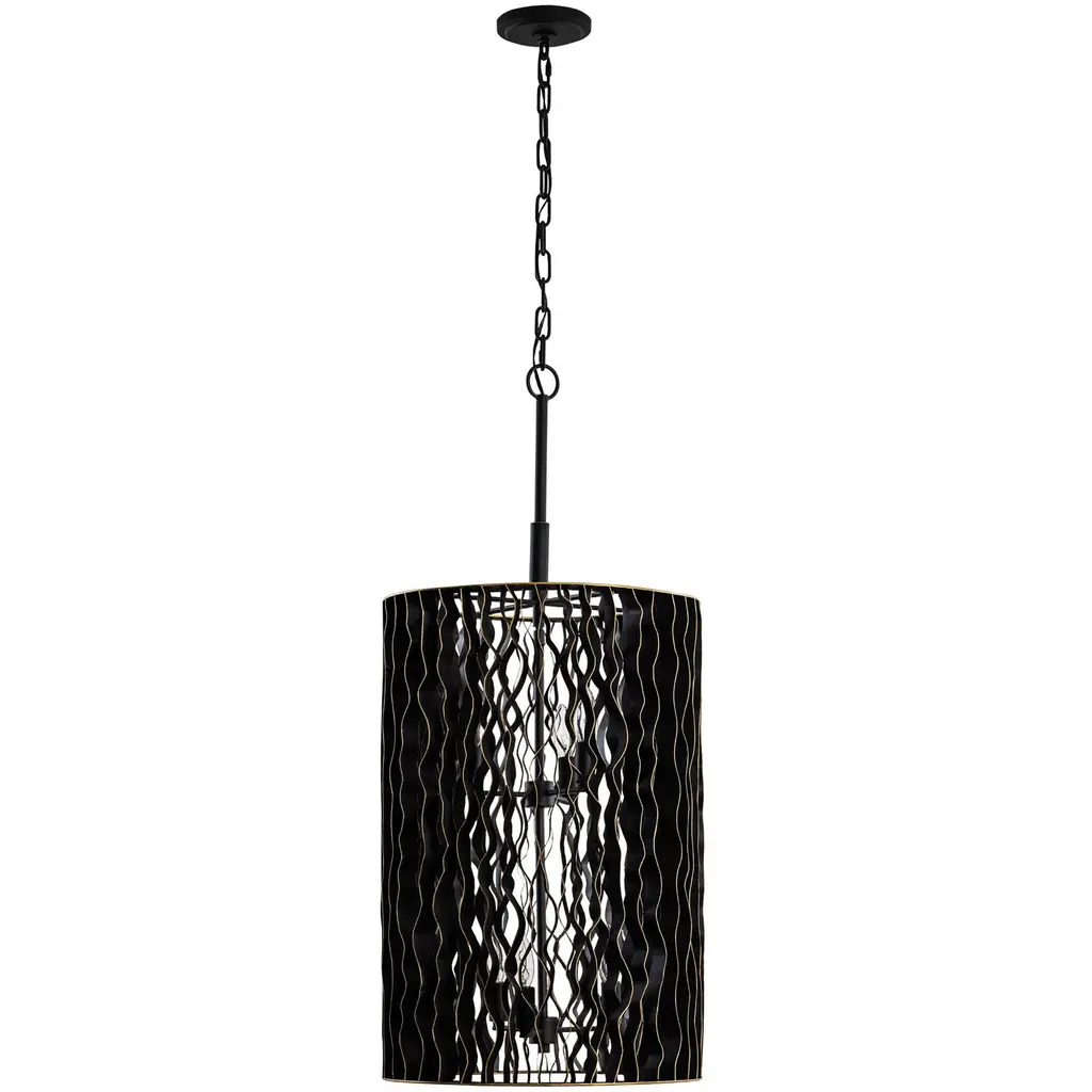 In their journeys through the Smithsonian Pollinator Garden, the designers at Varaluz reminisced about the many trails explored, both figuratively and literally. The word “estela” is a translation for the word “trail,” and this collection takes its inspiration from many of them and the nature surrounding them. Now all paths have converged in the Estela collection. We invite you to wander the cascading paths created by this new collection, where you’re sure to find your own path to enlightenment. For anyone looking for an inspired modern fixtures design, all trails lead to Varaluz. Estela features doubled up recycled wavy steel vanes finished in black with a slight gold edging inspired by the beauty of the Monarch butterfly.