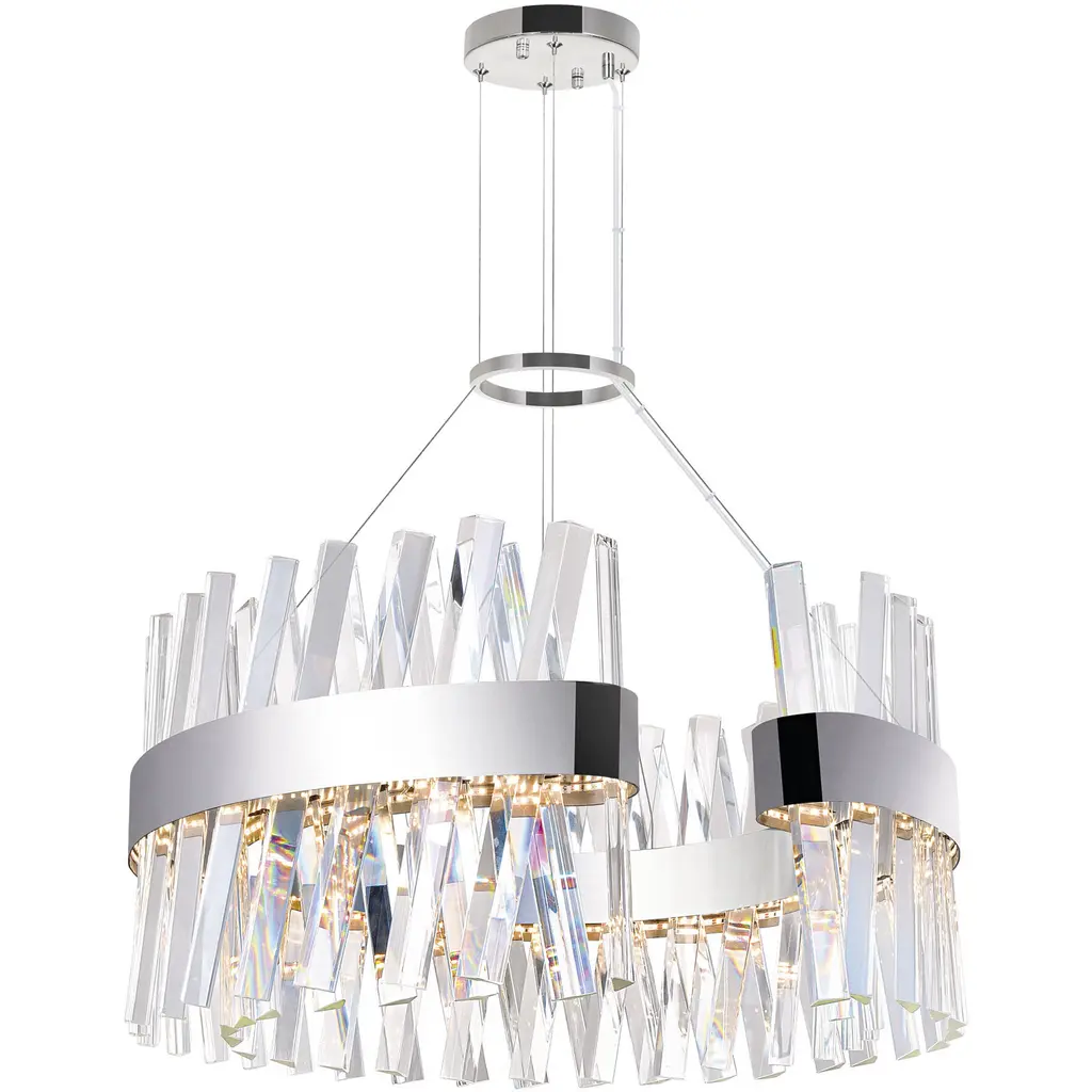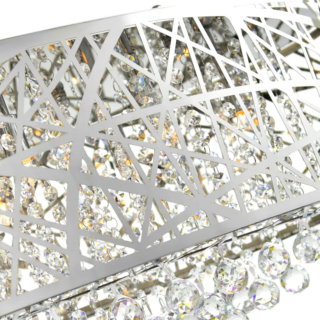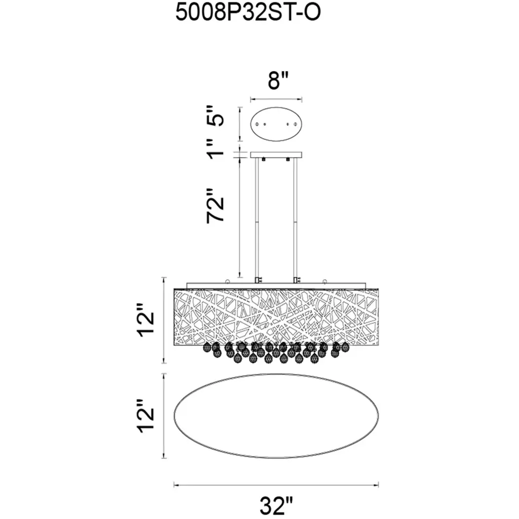 Infuse your kitchen with modern glamour using the Eternity 32'' Stainless Steel Chandelier. Designed for installation above kitchen islands or dining areas, this 8-light fixture features a gleaming drum shade in chrome stainless steel and is adorned with dangling clear crystal beads for added sparkle. The elongated 32-inch silhouette and eight G9 bulbs (LED compatible, bulbs not included) make this chandelier ideal for providing both task lighting and decorative appeal in contemporary kitchens or minimalist dining rooms. Finish: Stainless Steel / Chrome Light Count: 8 Bulb Base: G9 Certification: BACL Certified Warranty: 1-Year against manufacturer defects