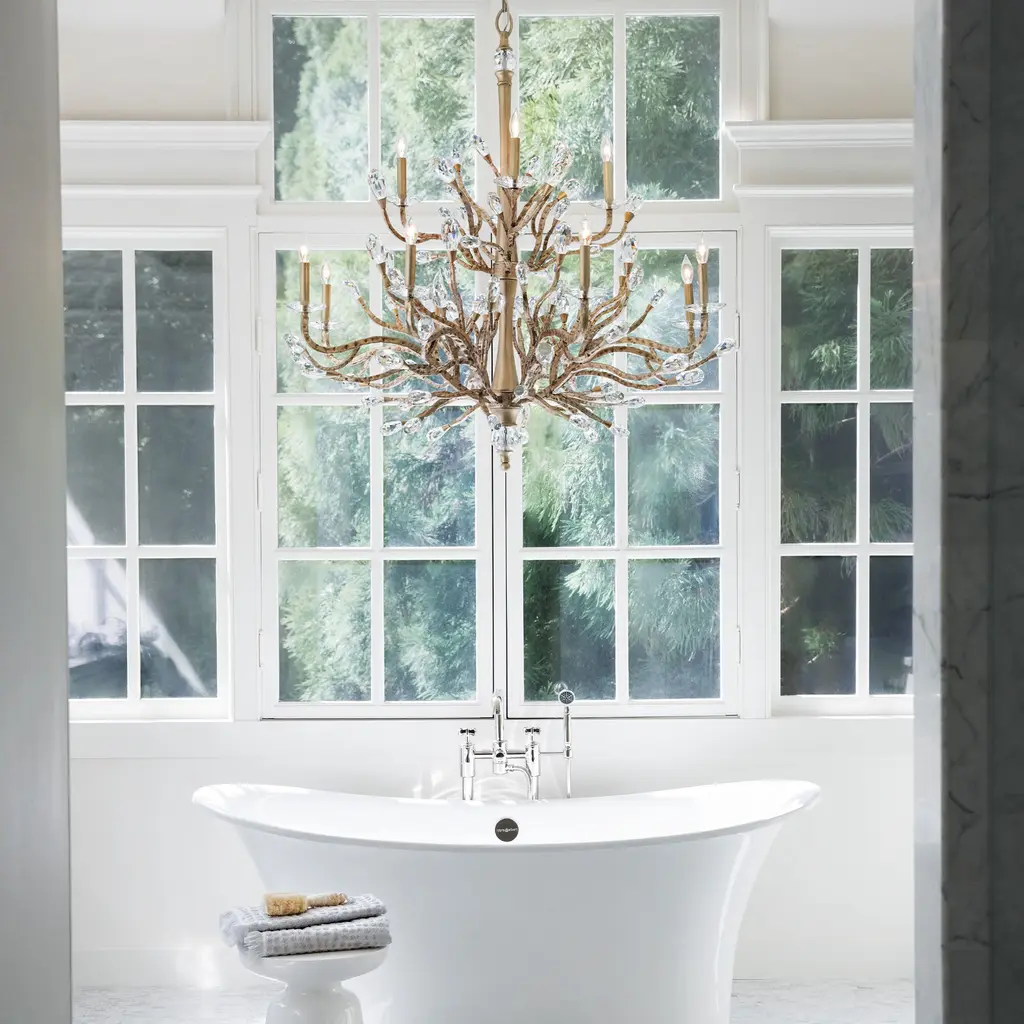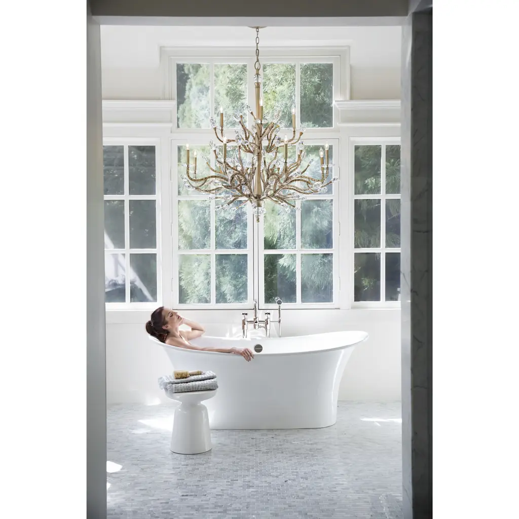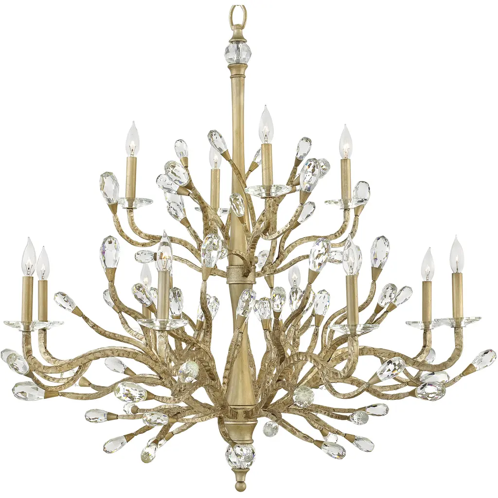 Eve's graceful, hand-forged tubing creates a natural, vine-like pattern in a hammered Champagne Gold finish while faceted clear crystal buds emanate from the tips.