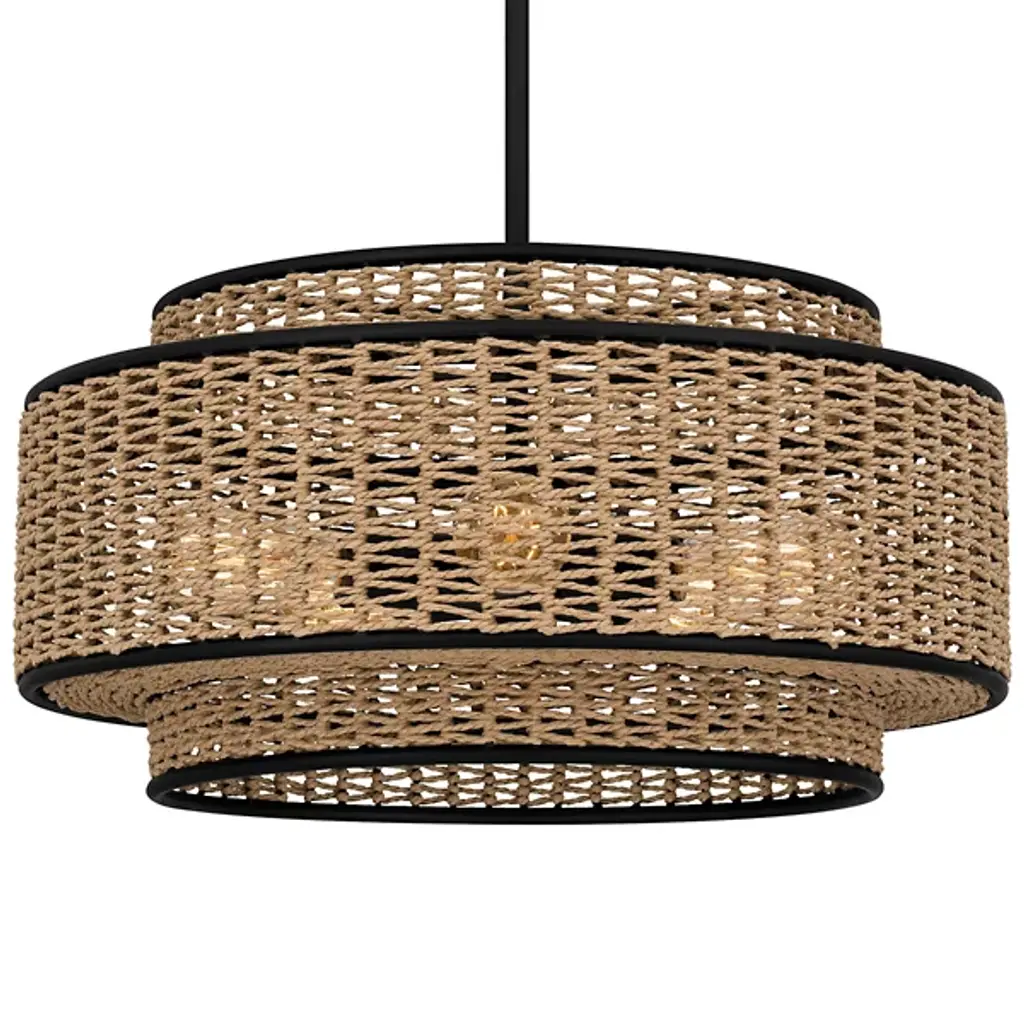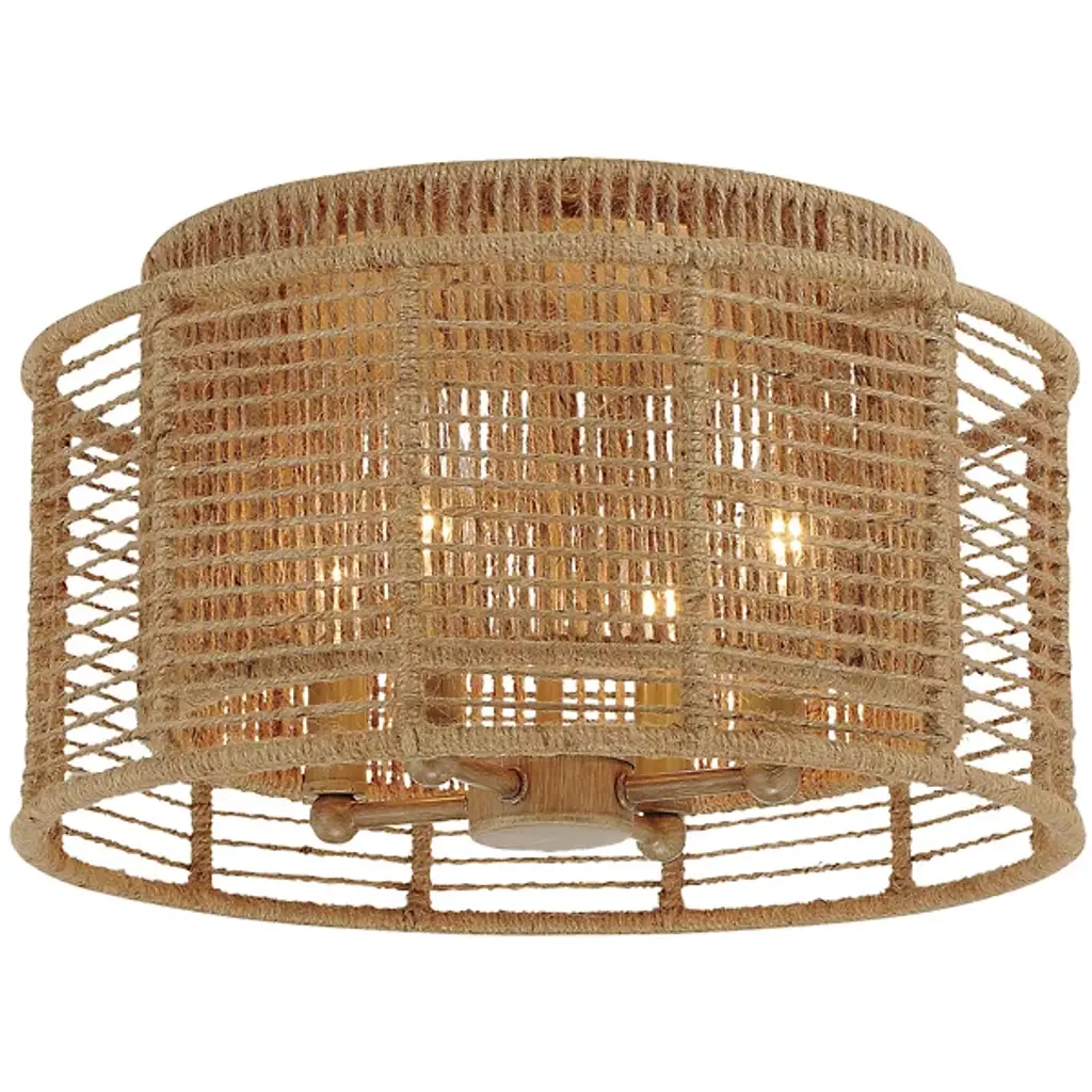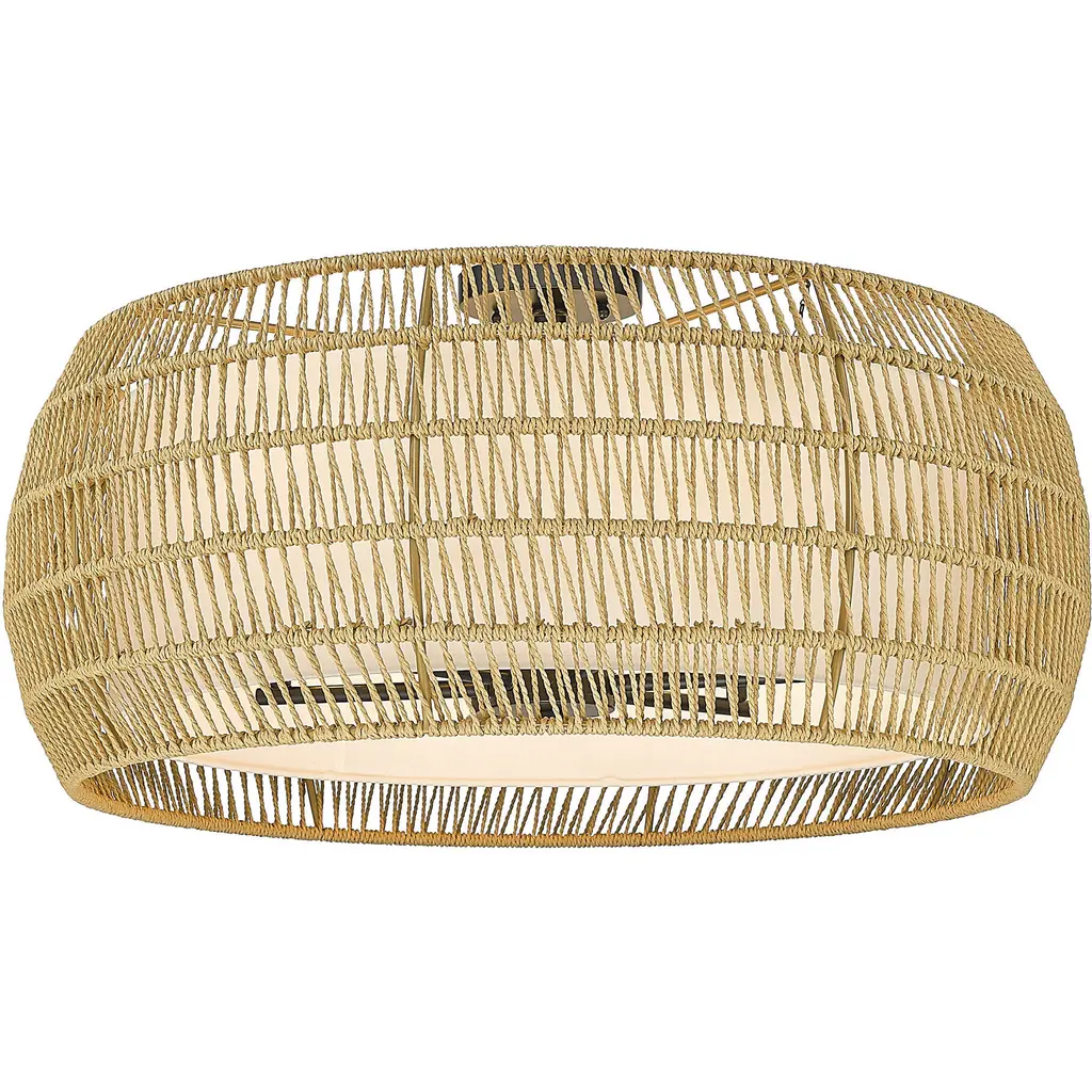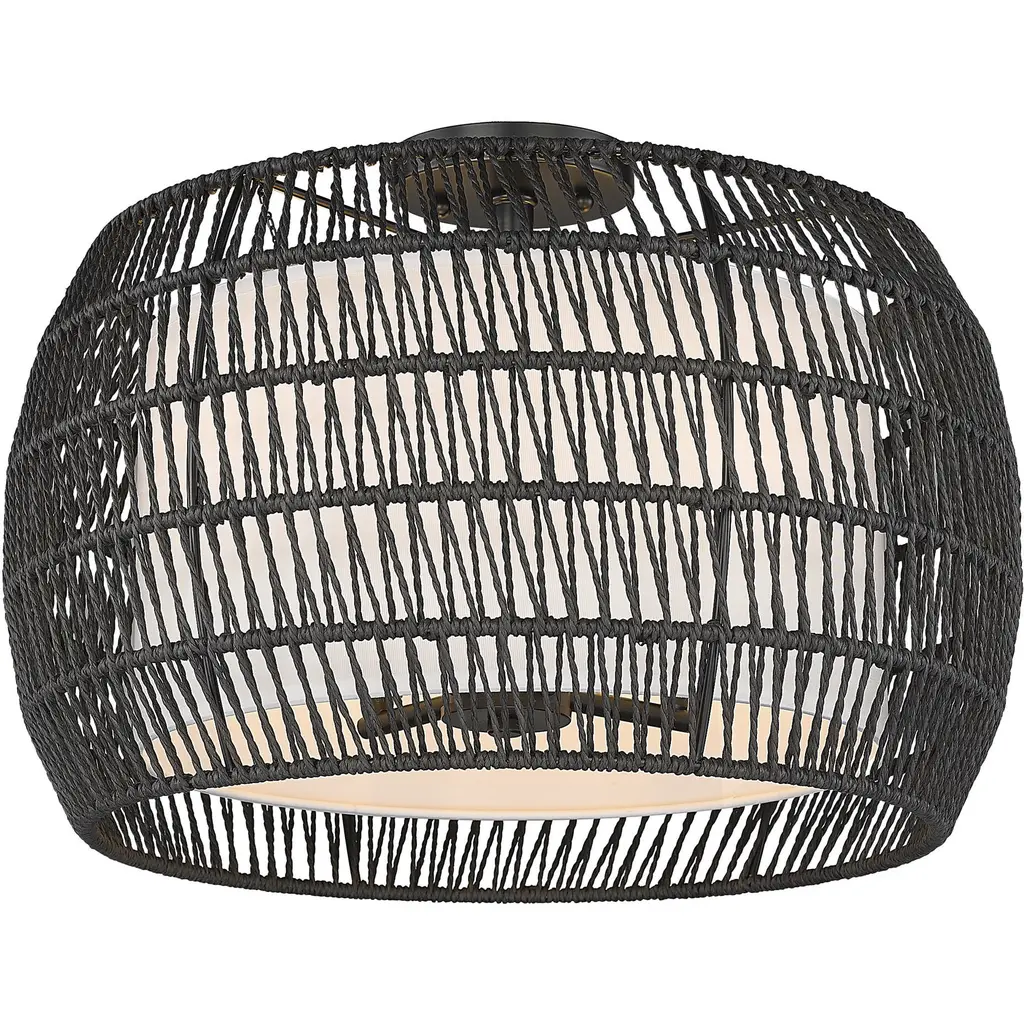 Bring Coastal elegance into your home with the Golden Lighting Everly 4-light Semi-Flush Mount. Featuring a Wicker shade and a Matte Black frame, it creates a welcoming atmosphere.The handwoven Wicker shade, crafted from Natural Rattan, offers a relaxed aesthetic that beautifully diffuses light, making it perfect for creating a cozy ambiance.Our Matte Black finish is both stylish and versatile, providing a sophisticated touch that integrates seamlessly with various design themes.This Damp Location Rated fixture is perfect for areas such as entryways, kitchens, and living spaces with mid-height ceilings. Its convertible construction allows for flexible installation to suit any room layout.Dimensions: 19"W x 13.25"H x 19"D. Requires 4 E12 Candelabra base bulbs (not included), max 60 watts.Quality craftsmanship and a focus on natural textures ensure that this semi-flush mount enhances your homes aesthetic while providing practical illumination.