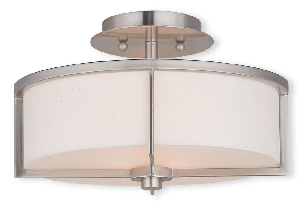 The double-shade design of our large, semi-flush delivers the clean and minimalistic elegance the collection is known for, but adds another visual element with the inclusion of an internal drum shade. Hand-forged steel bars cradle both shades.