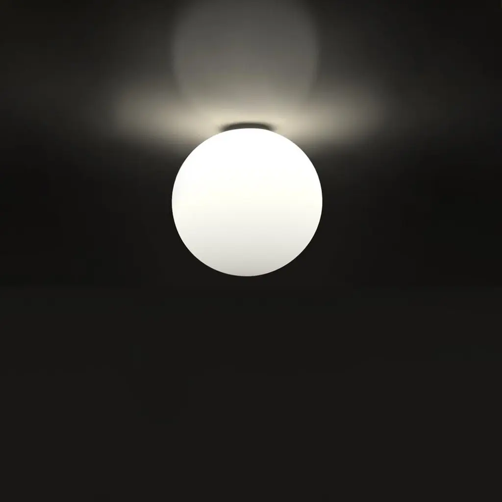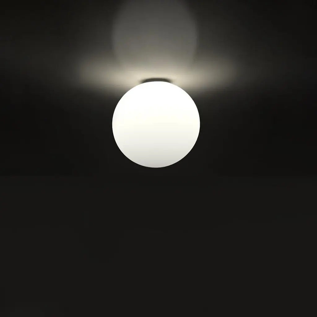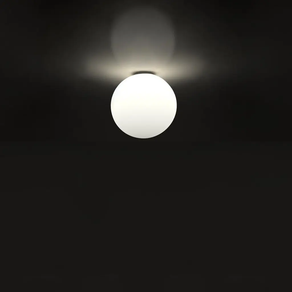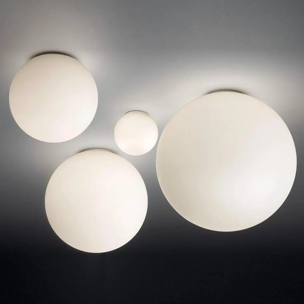 Extra large Michele de Lucchi 'Dioscuri 42' wall or ceiling light.'Dioscuri' is a timeless fixture that diffuses a heavenly light. This multipurpose dimmable lamp features a minimalistic design that transcends time with its charm. UL wet location listed, this versatile lamp can be used indoors or outdoors as either a wall or ceiling light. Executed in hand-blown acid-etched frosted glass with a hidden thermoplastic resin base.Price is per item. Available to order in unlimited quantities and in four sizes. Also available as a table lamp - please see our separate listings. This listing is for the extra large 'Dioscuri 42' wall or ceiling lamp.In stock and available for immediate fulfillment. Out of stock lead time can take 8 weeks or longer. Please note that inventory and lead time are subject to change and without notice. Please contact us for current lead time prior to placing time-sensitive orders.Illuminated by 1x E26 medium base dimmable LED bulb with a maximum 100Watt Equivalent (bulb not included). IP44 rated and UL listed.Made to order. All sales final.
