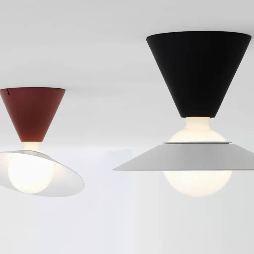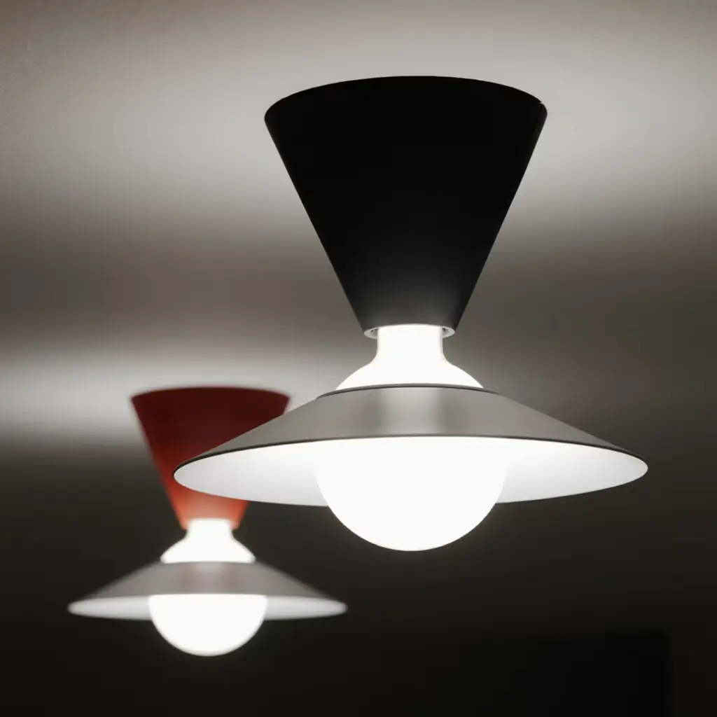 Fante’s light is easy to direct, thanks to the adjustable reflector on the bulb. The freedom of inclination allows simultaneous control of both the downward illumination and the indirect diffused light for upward radiance. The conical base is soft and pleasing to the touch, perfectly completing the proportioned design. Silicone base, aluminum parabolic diffuser. Single emission ceiling lights for indoor application. LED lamp included.