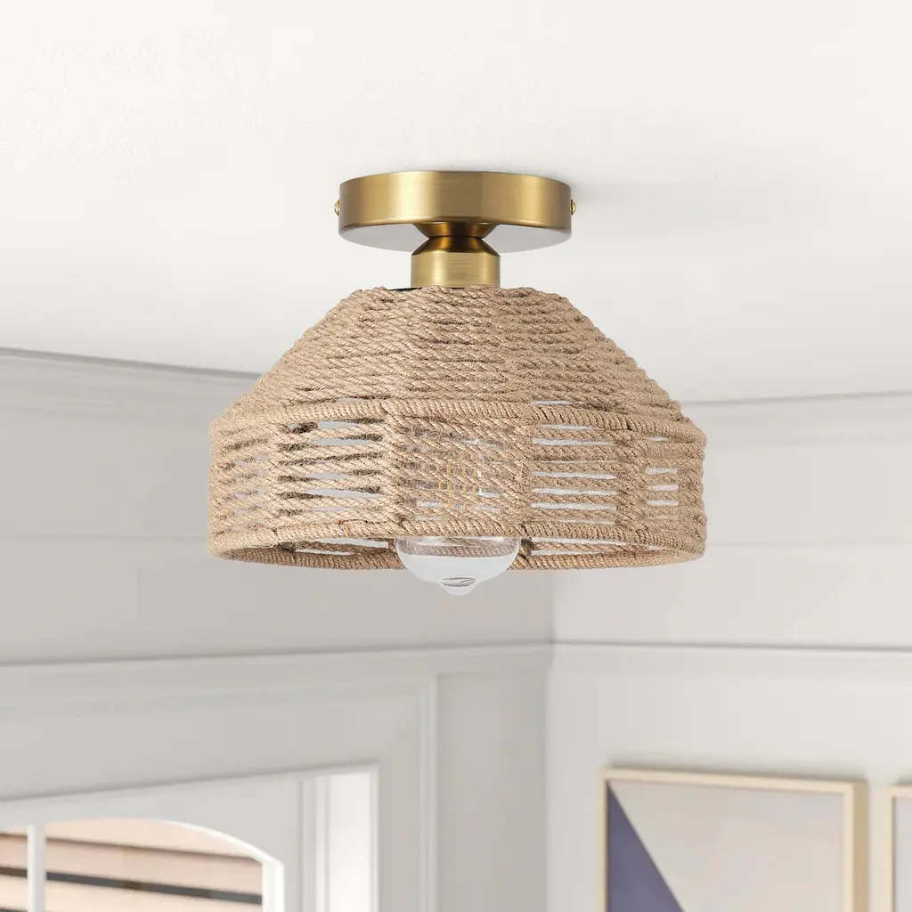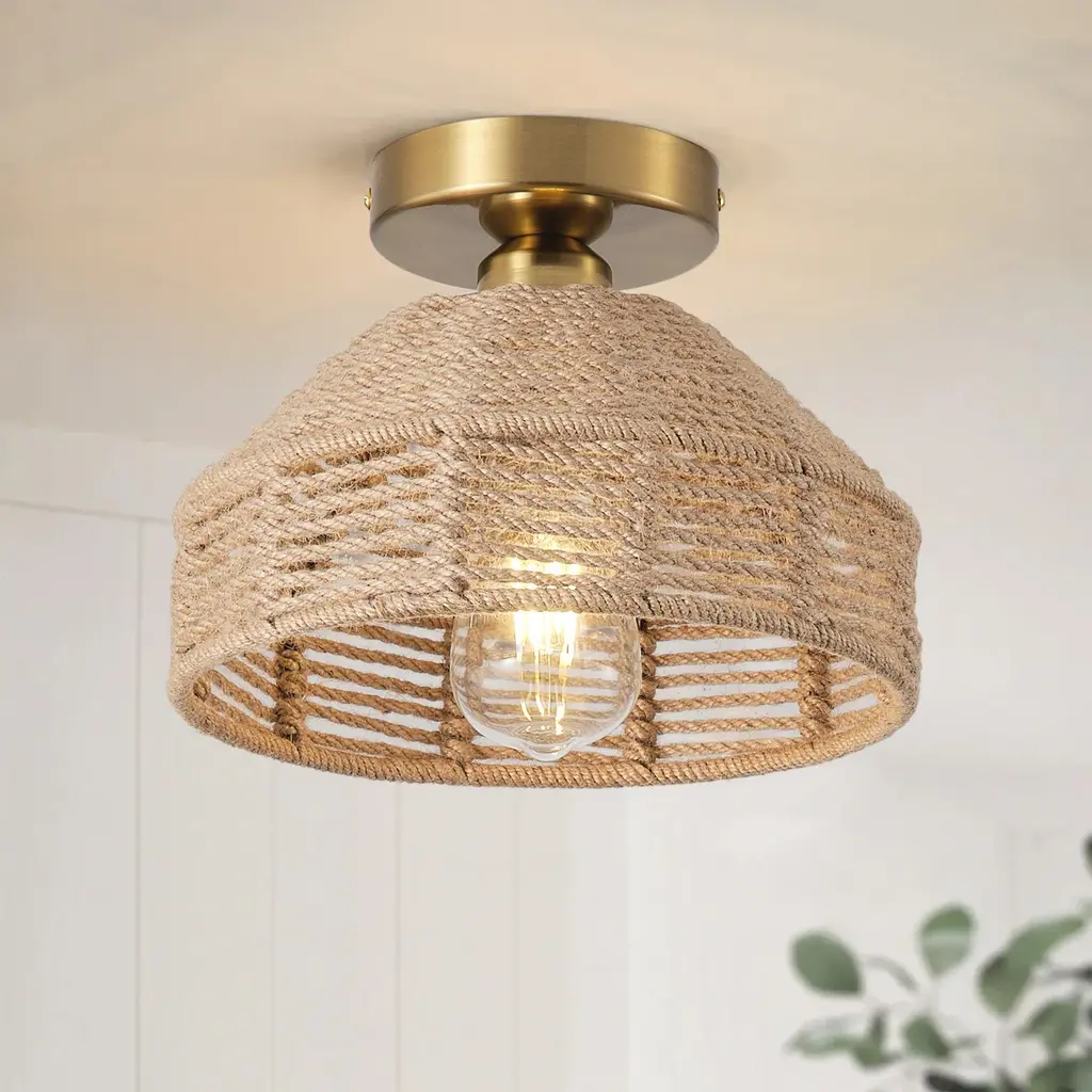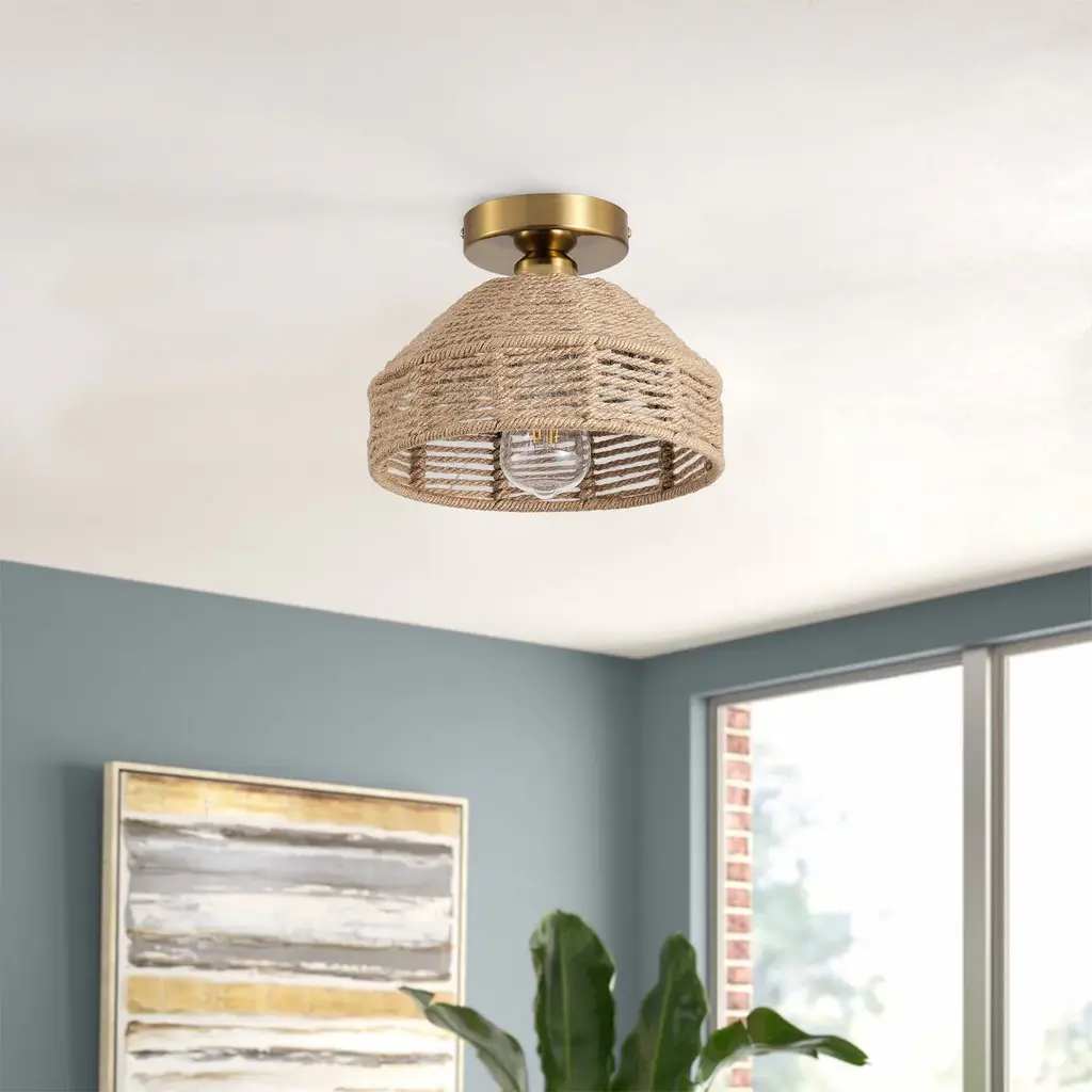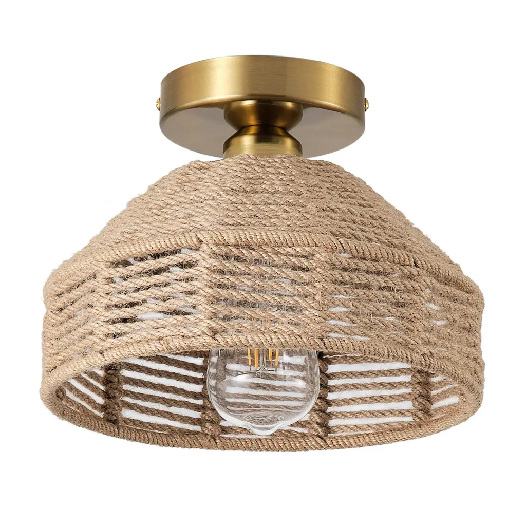Specifications: Woven Ceiling Light: The farmhouse ceiling light is hand-woven with hemp rope, which is a natural material that exudes a warm and earthy aesthetic. It can be incorporated into different interior themes, from bohemian and coastal to farmhouse and minimalist.Quality Assurance: High-quality iron and hemp rope materials were used to craft the ceiling light. All products in the factory have to undergo rigorous safety monitoring, to ensure quality and safety, which is beautiful, corrosion-resistant, and durable for a long time.Easy to Install: All installation hardware and installation instructions are included in the package for you. We simplify all the complex steps to ensure an easy & quick installation process for you. If you have any problems please feel free to contact us.ETL Listed & Bulb Requirement: ETL Listed for your safety. The ceiling light is a built-in standard E26 socket, suggest using the dimmable E26*1 base bulbs (Max 25W, 120V), it could be a fully dimmable and compatible dimmer switch. Bulbs and dimmer switch not included.Applicable Places: Combining farmhouse and bohemia style, this ceiling light radiates soft light, perfect for decorating living rooms, dining rooms, kitchens, bedrooms, basements, entryways, hallways, laundry rooms, libraries, bars, cafes, and more.