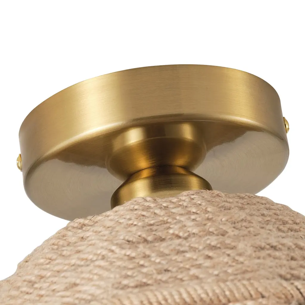 Farmhouse 1-Light Handmade Hemp Rope Weaving Semi Flush Mount Ceiling Light - Brass