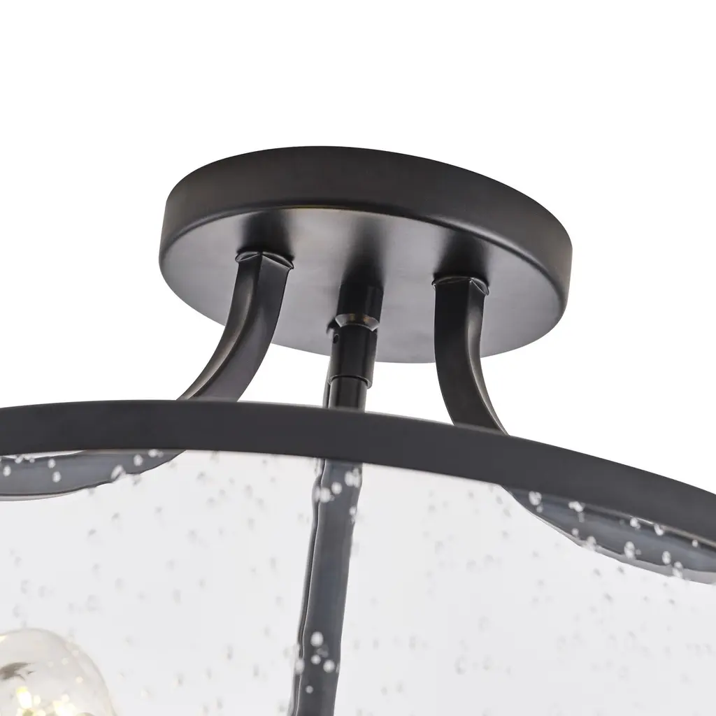 Farmhouse Matte Black 3-Light Semi Flush Mount Ceiling Lighting Fixture With Drum Seeded Glass Shade - Matte Black