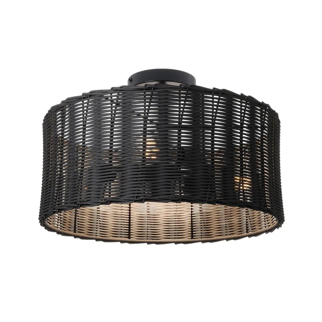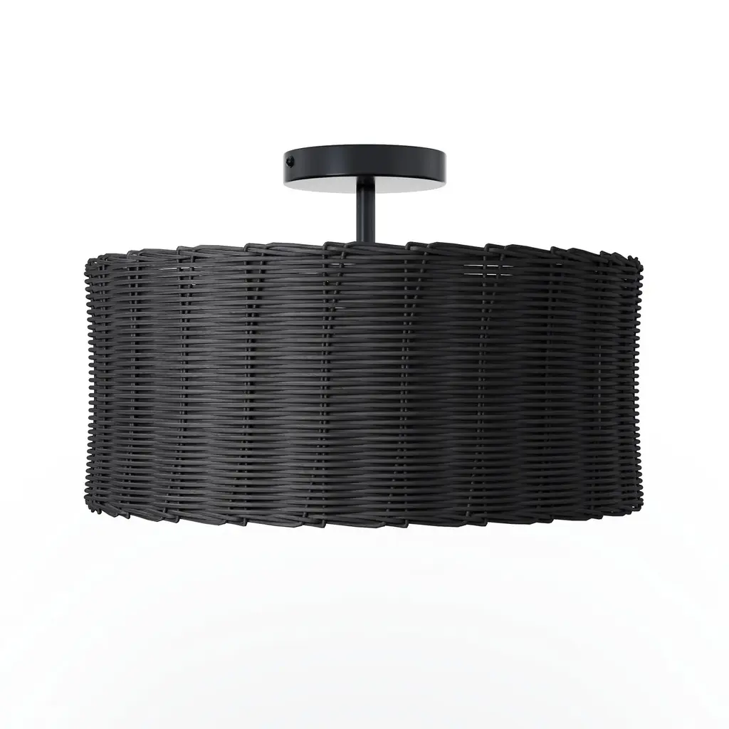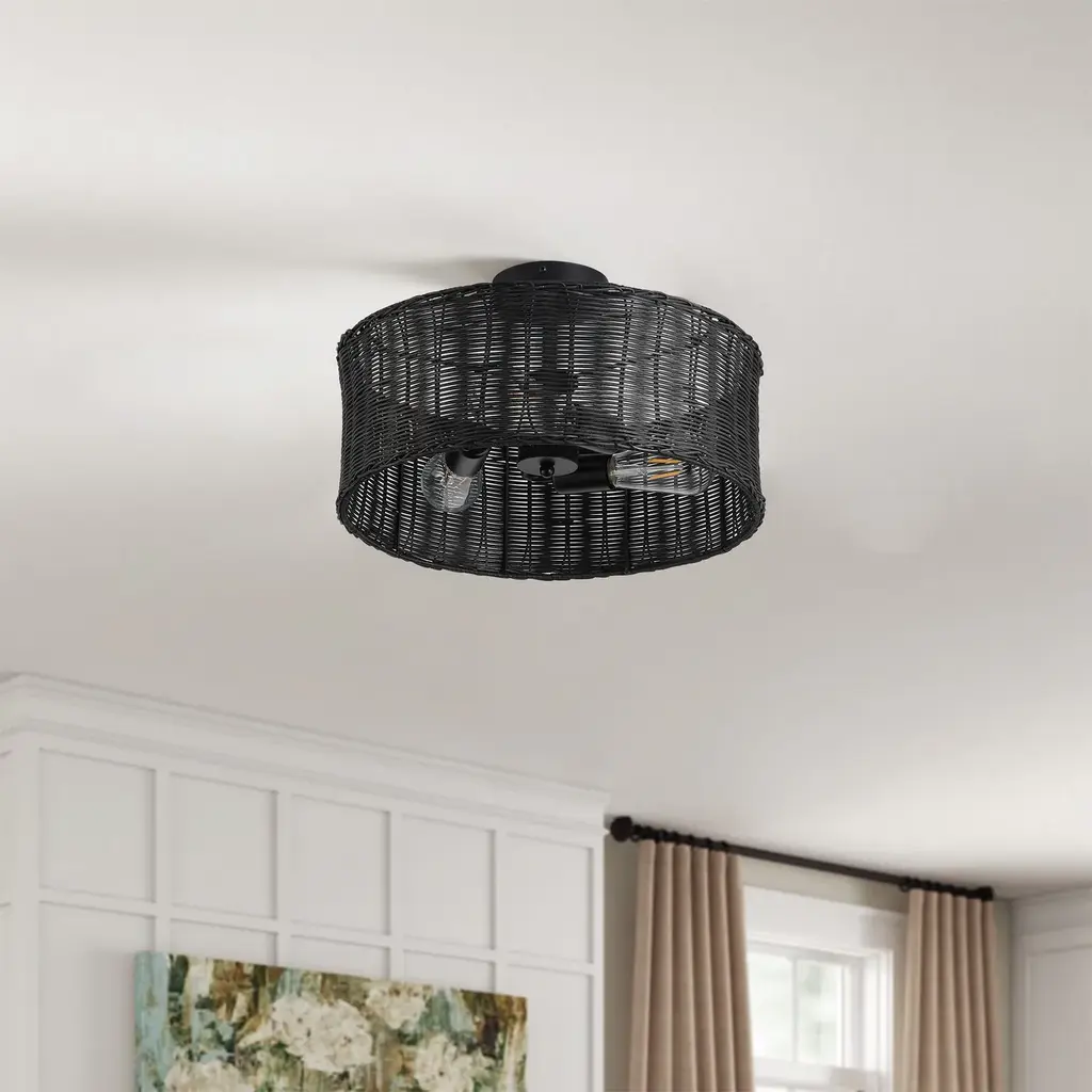 Farmhouse Woven Rattan 3-Light Drum Semi Flush Mount Ceiling Light Fixture - Black