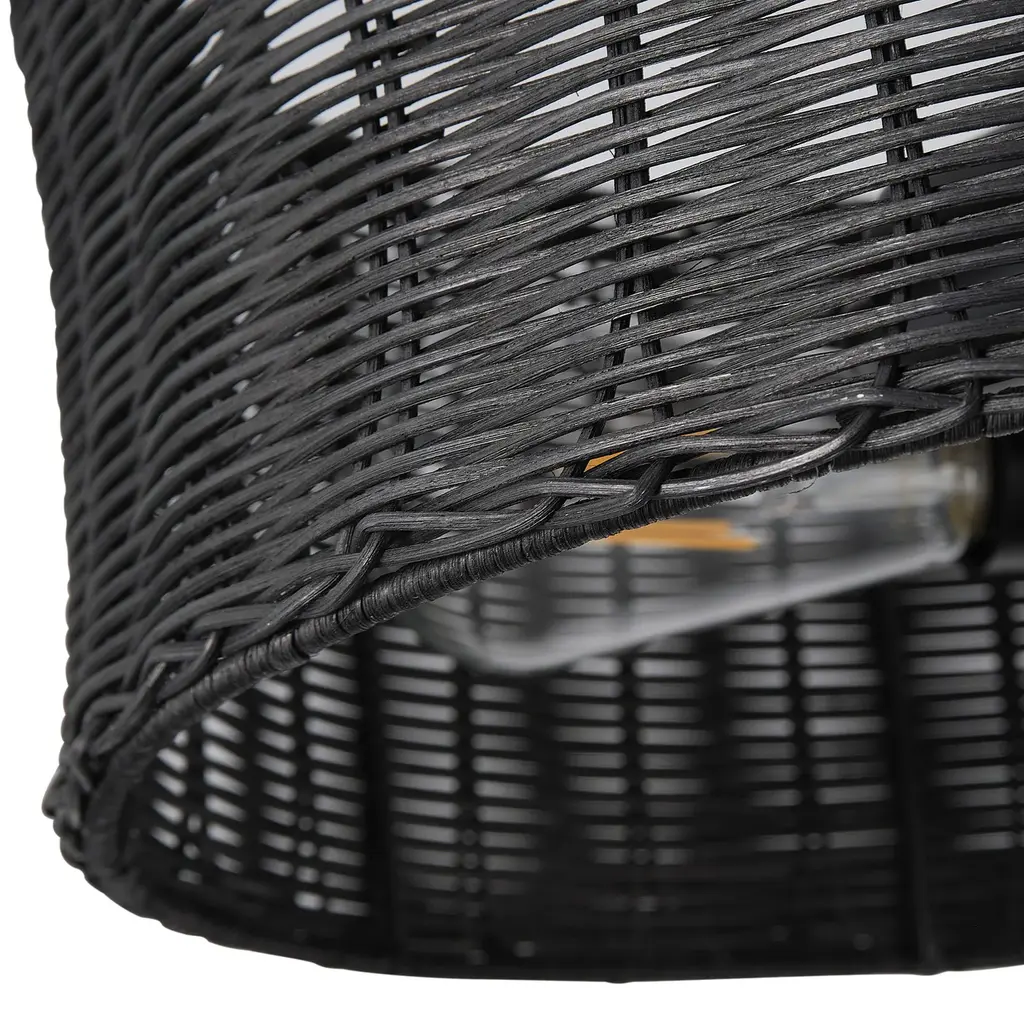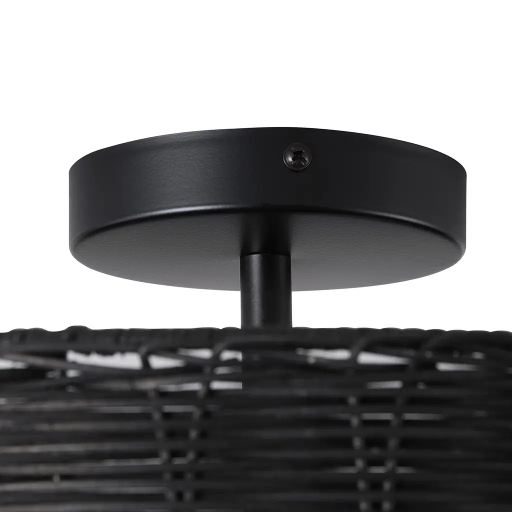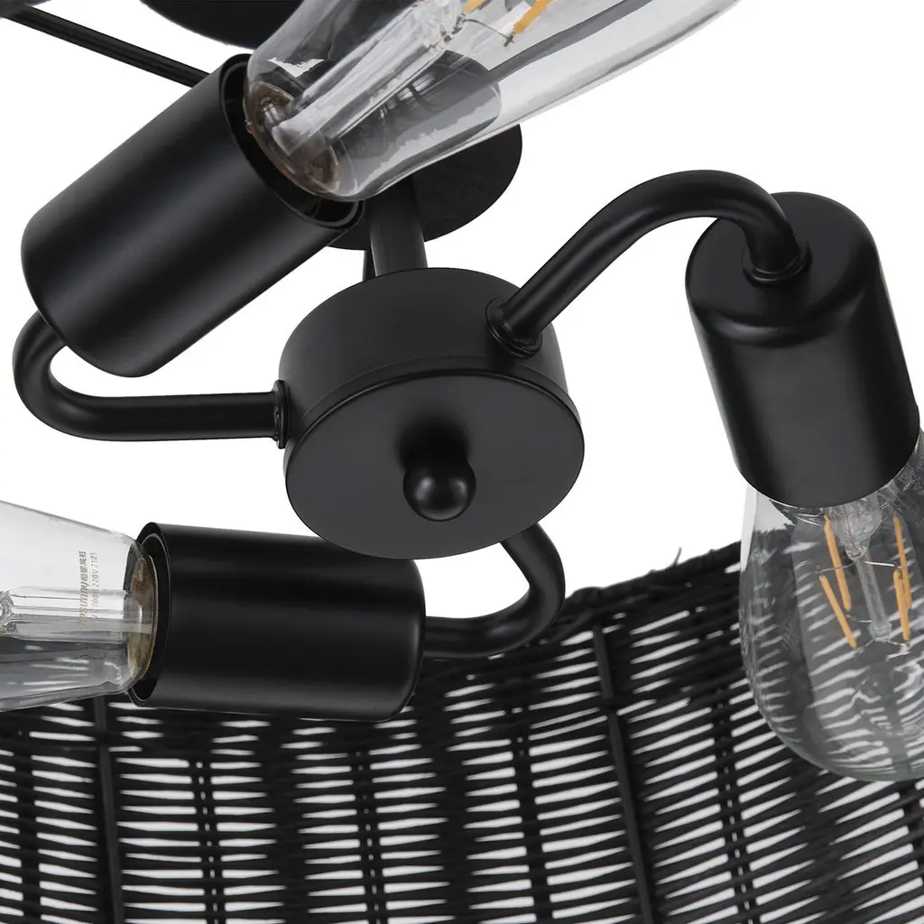 Farmhouse Woven Rattan 3-Light Drum Semi Flush Mount Ceiling Light Fixture - Black