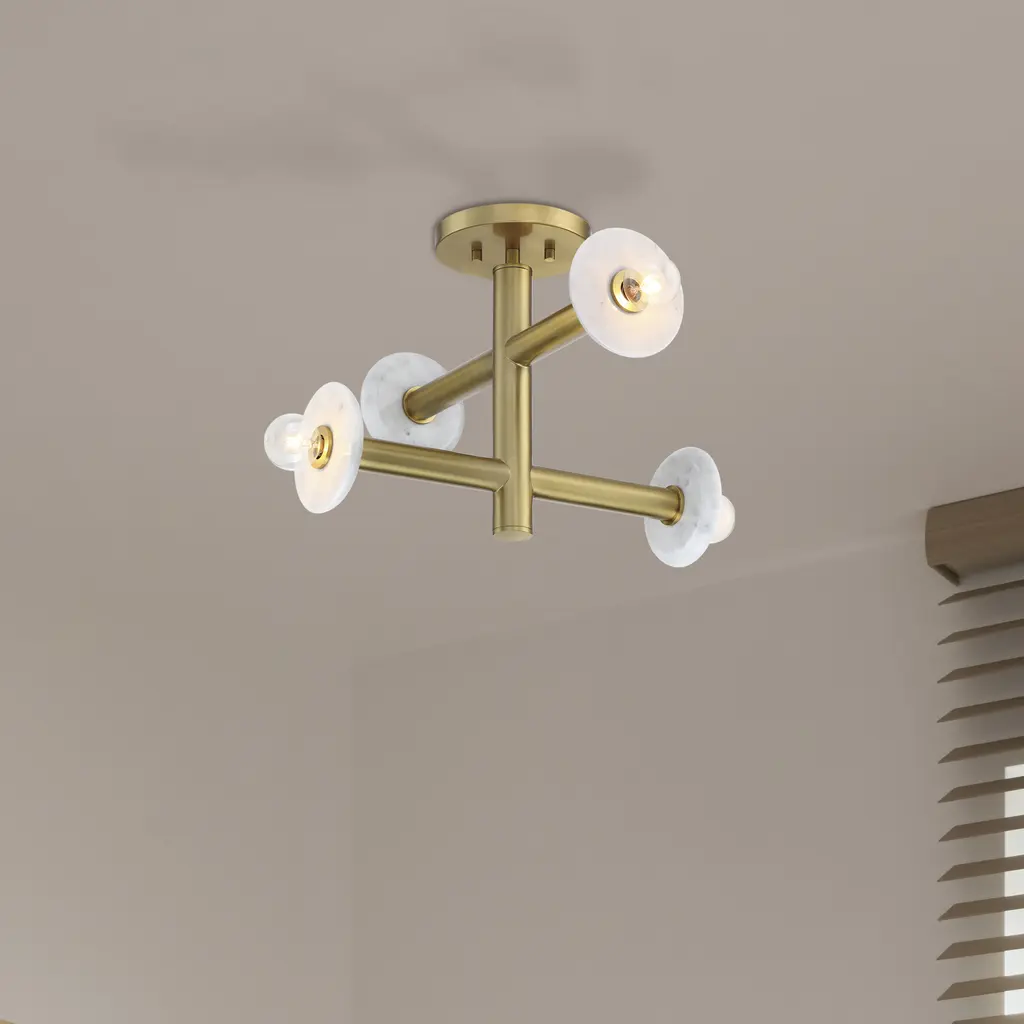 Fina semi-flush mount lighting from Designers Fountain combines a modern aesthetic with the artisan craftsmanship of natural marble accents. Fina is available in brushed gold and matte black, and can be hung close to the ceiling, or converted to a pendant with the included extension rods. Use these pieces in bedrooms, hallways, over a table, or anywhere else you may need some accent lighting. Installation is a snap, with easy-to-follow instructions and all mounting and wiring hardware included.