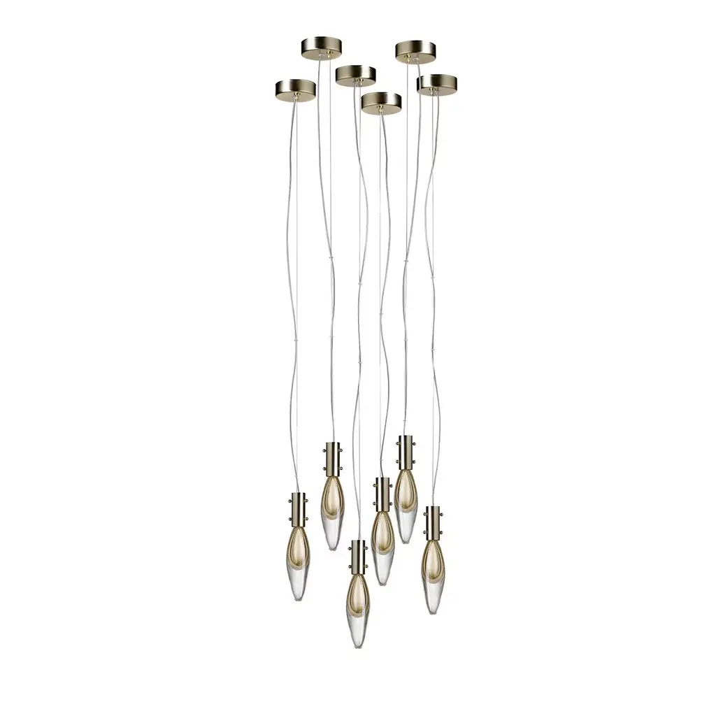 Fiori Square Multi-Port 9 Pc.-Burnished Bronze-White Glass Lens-Bronze Cloth Braided Cord-LED