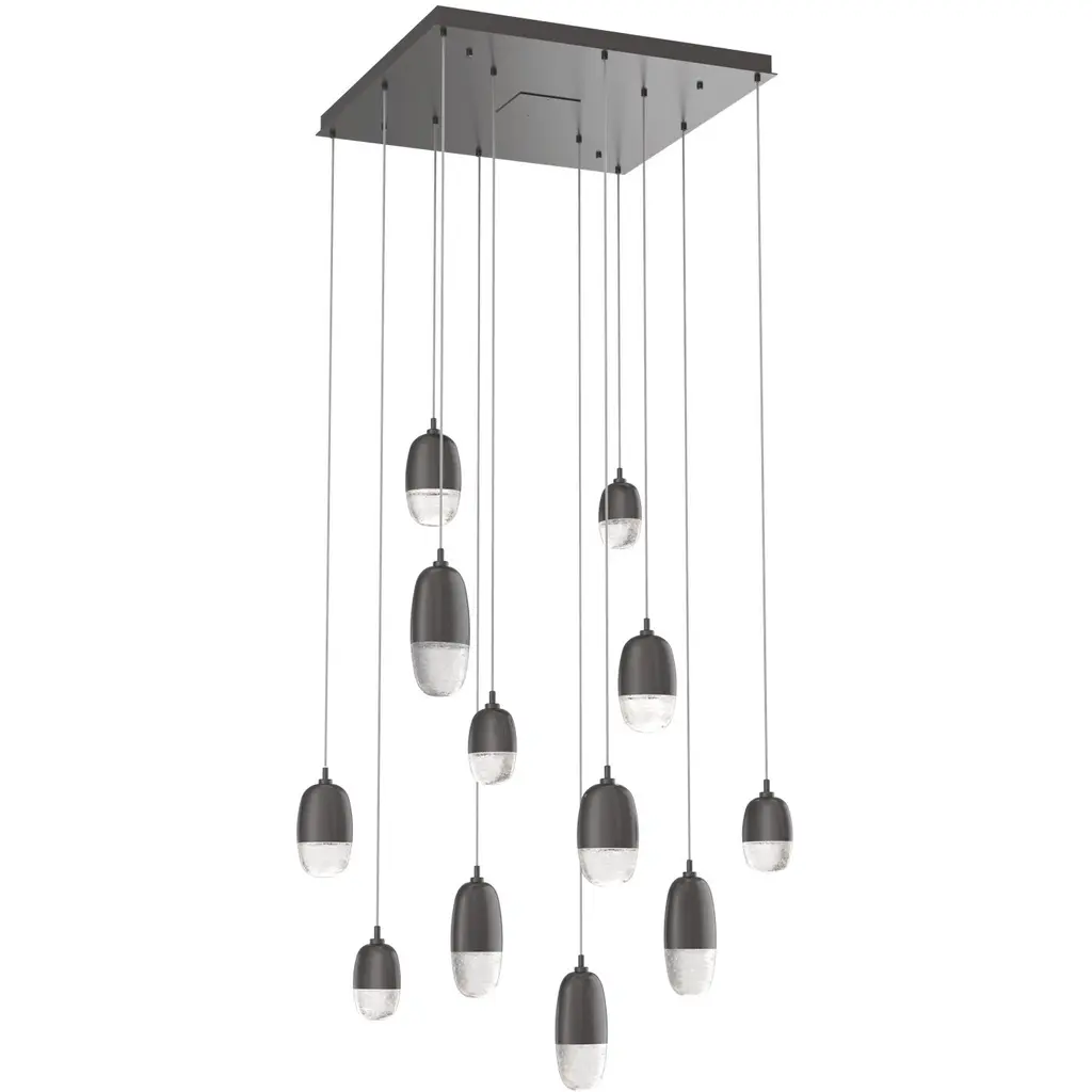 Fiori Square Multi-Port 12 Pc.-Matte Black-White Glass Lens-Black Cloth Braided Cord-LED