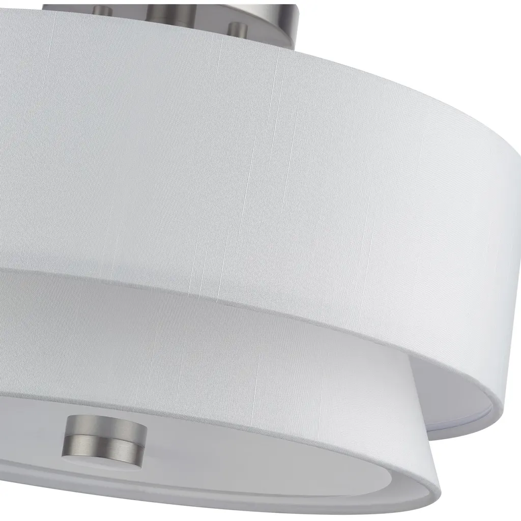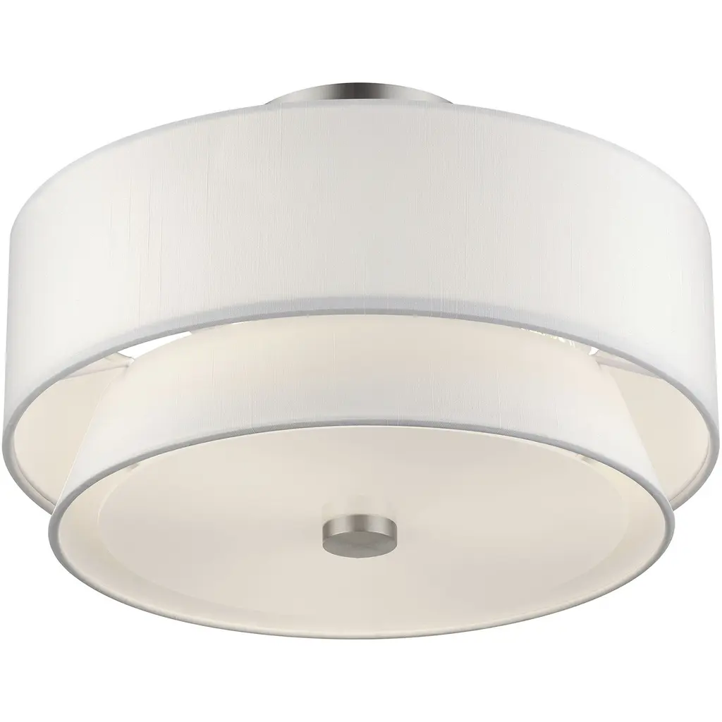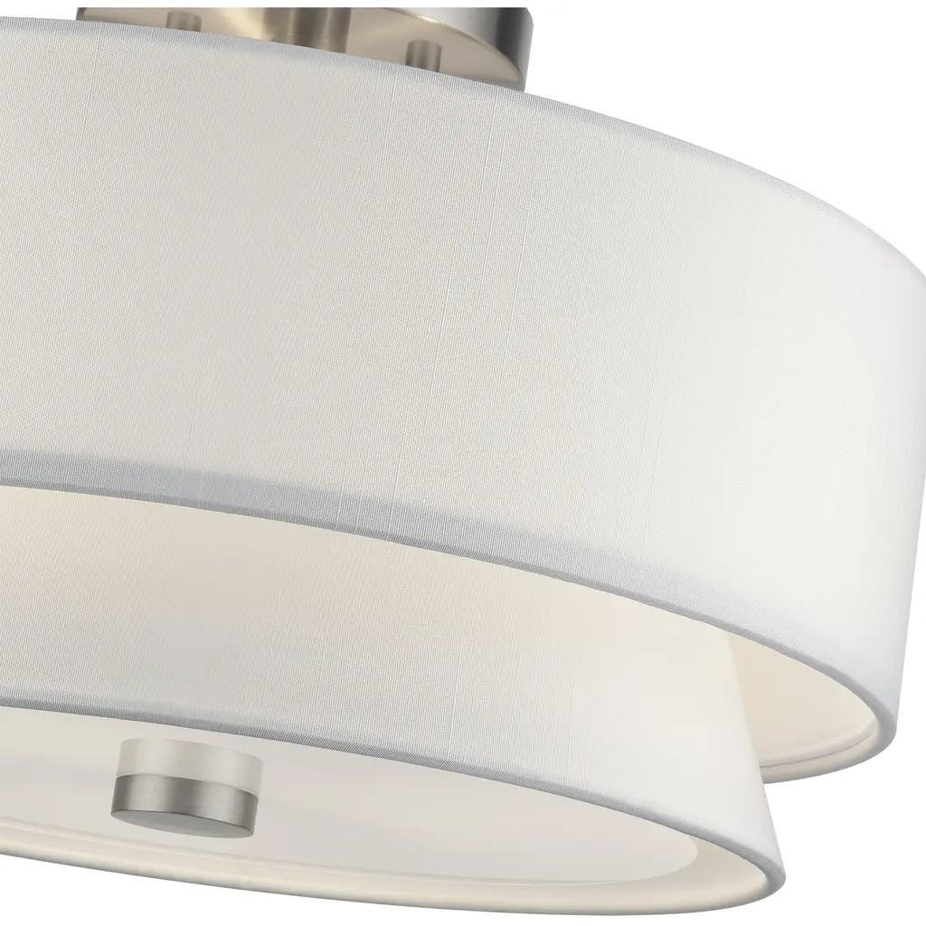 Update your decor with the clean styling of this contemporary three light large semi-flush light from the Fontana collection. A double drum shade adds character to this handsomely styled brushed nickel finish light. It features a lovely hand crafted off