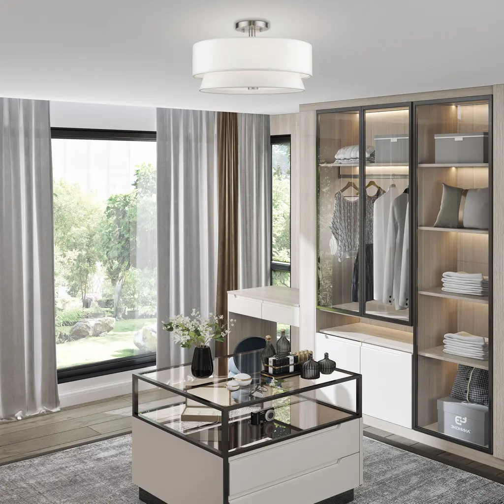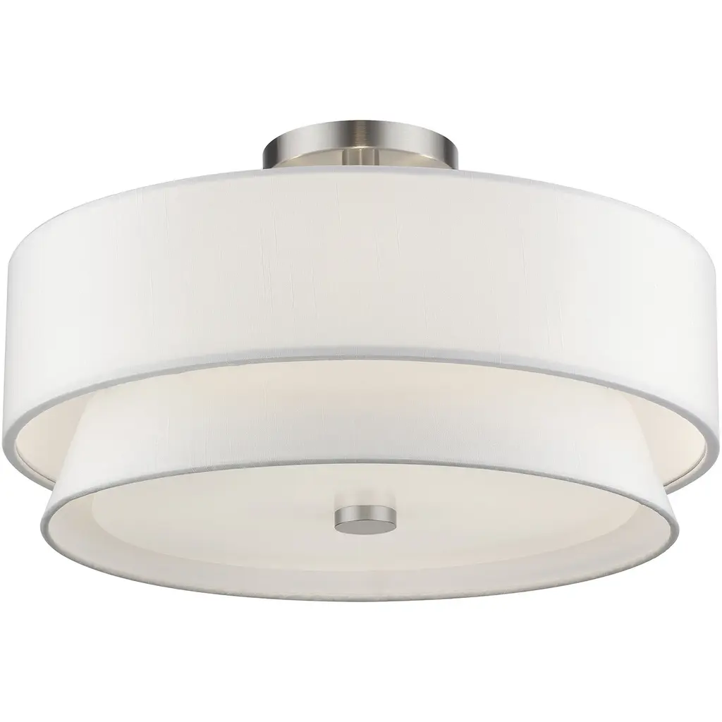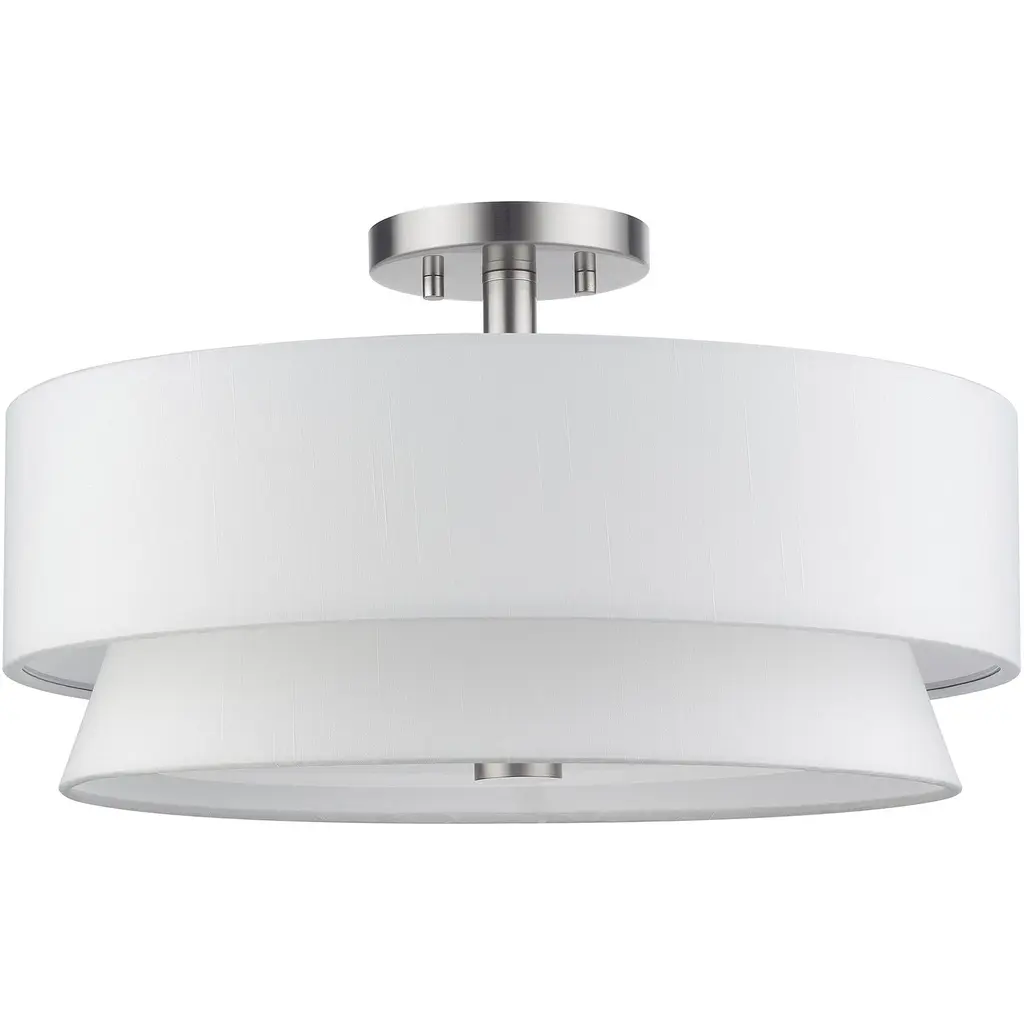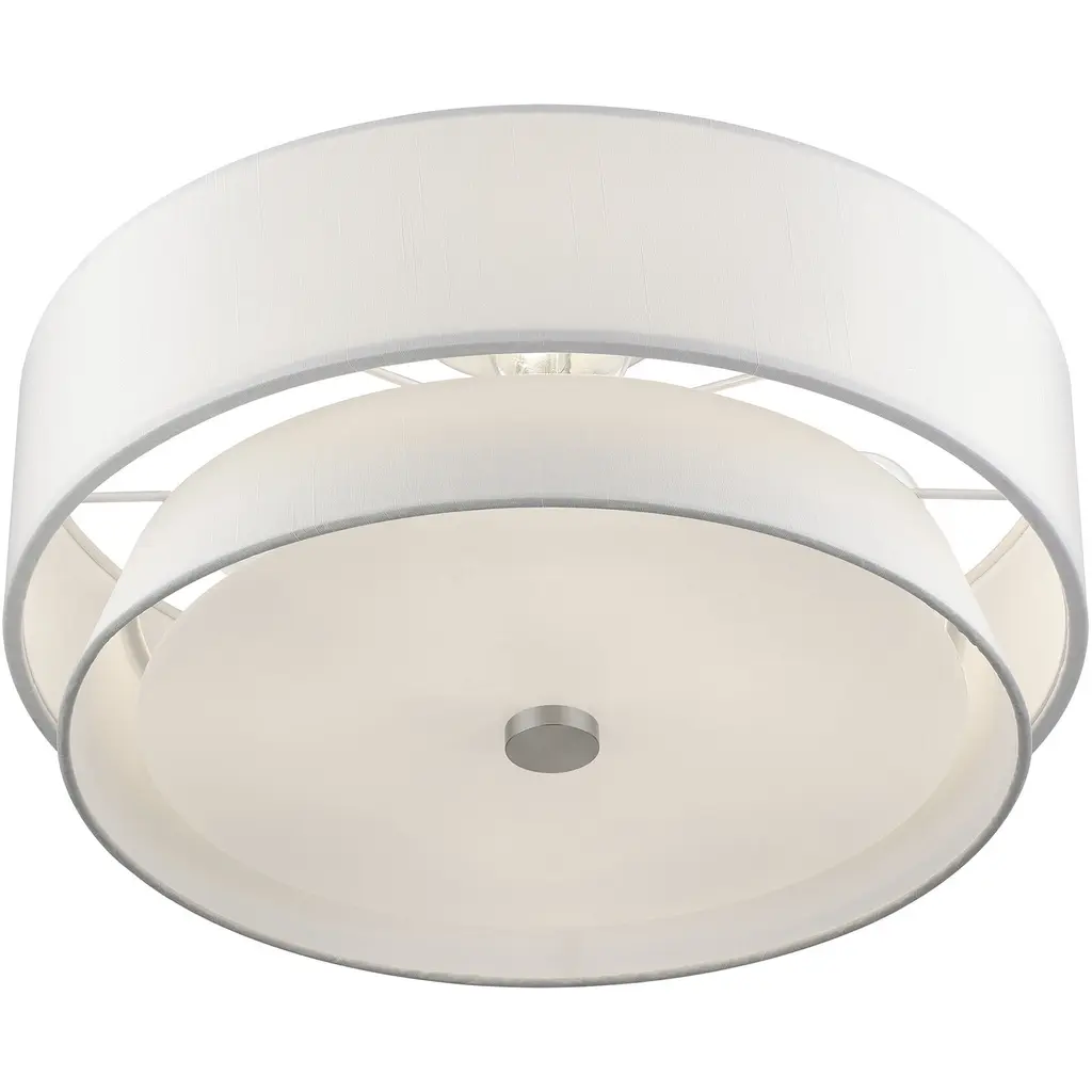 Update your decor with the clean styling of this contemporary four light large semi-flush light from the Fontana collection. A double drum shade adds character to this handsomely styled brushed nickel finish light. It features a lovely hand crafted off w