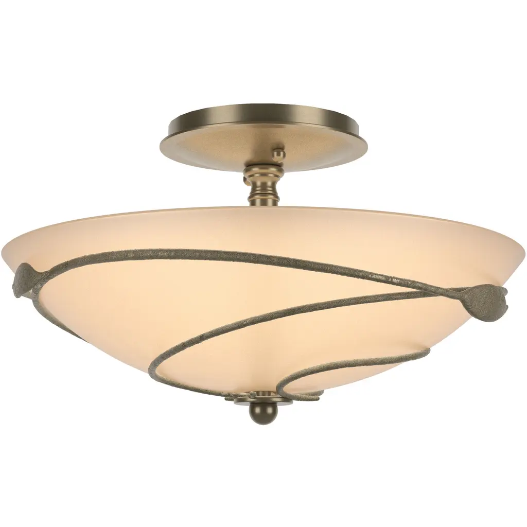 Forged Leaves 2 Light 13.5 Inch Ink Semi-Flush Ceiling Light In Sand