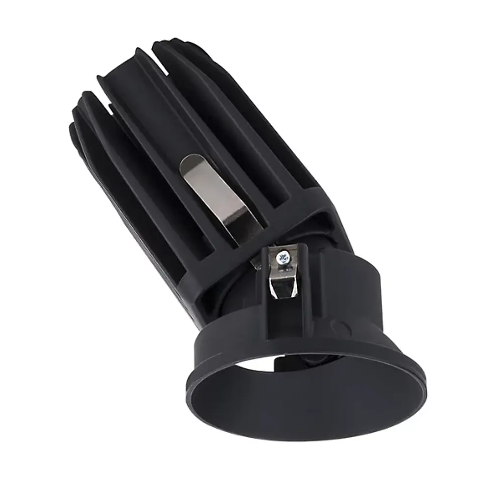 The FQ 2-Inch LED Round Adjustable Trimless Trim with Light Engine from WAC Lighting is distinguished by its outstanding glare control capabilities, including a 30° shielding feature, 35° vertical tilt, and full 360° horizontal rotation. These attributes ensure consistent and even wall washing from floor to ceiling, making it a versatile solution for various lighting requirements. This product prioritizes user-friendliness, simplifying the ordering, installation, and maintenance processes. Operating effectively within a temperature range spanning from -4°F to 104°F (-20°C to 40°C), these luminaires feature a two-piece die-cast construction optimized for shallow ceiling plenums. Its light engine is thoughtfully situated on the trim, equipped with springs for straightforward replacement. It further allows for a vertical tilt of 0-35° and a horizontal rotation of 365°, and its beam angle can be adjusted using the provided reflectors.